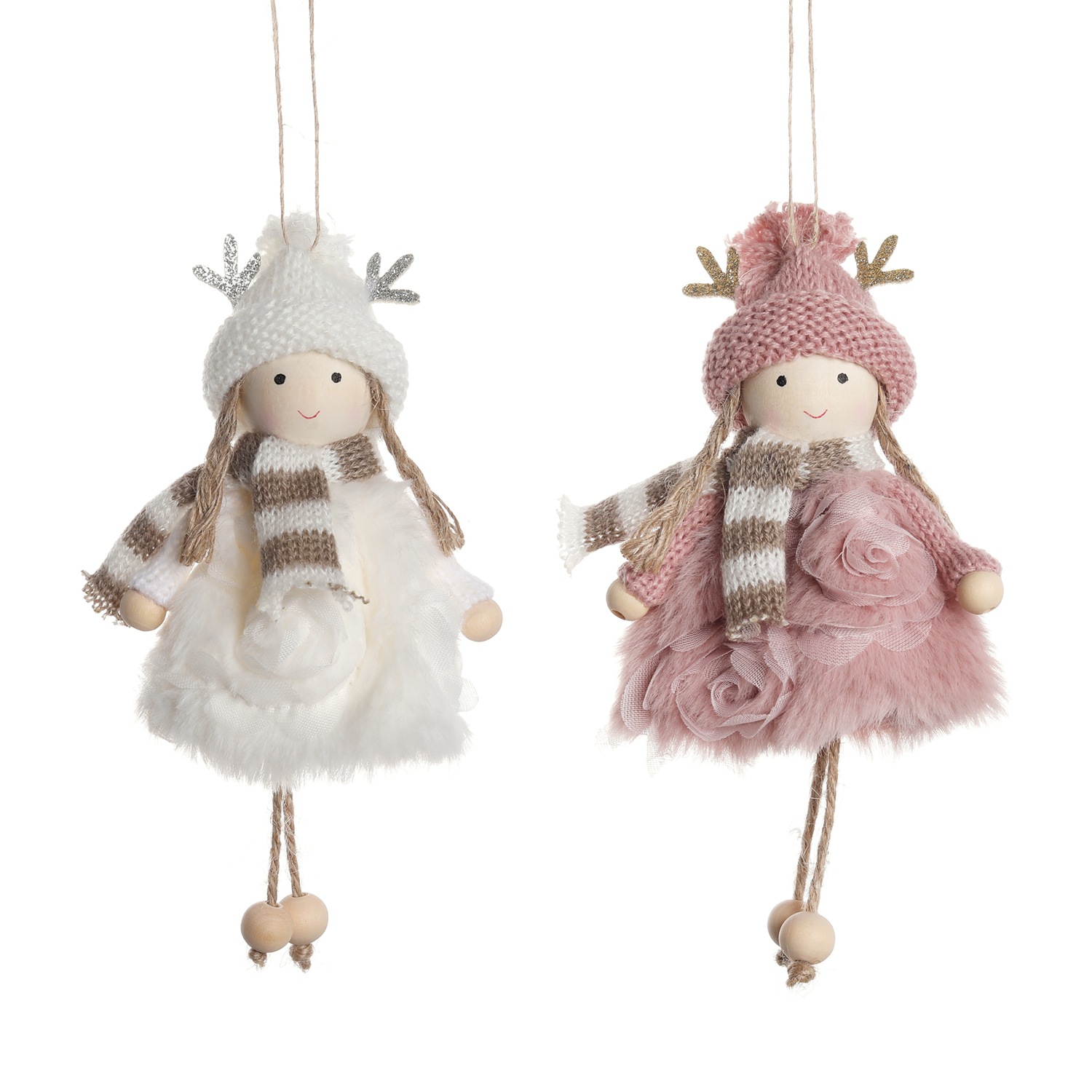 Color: wooden face antlers beaded white for girls, wooden face antlers beaded girl pink style