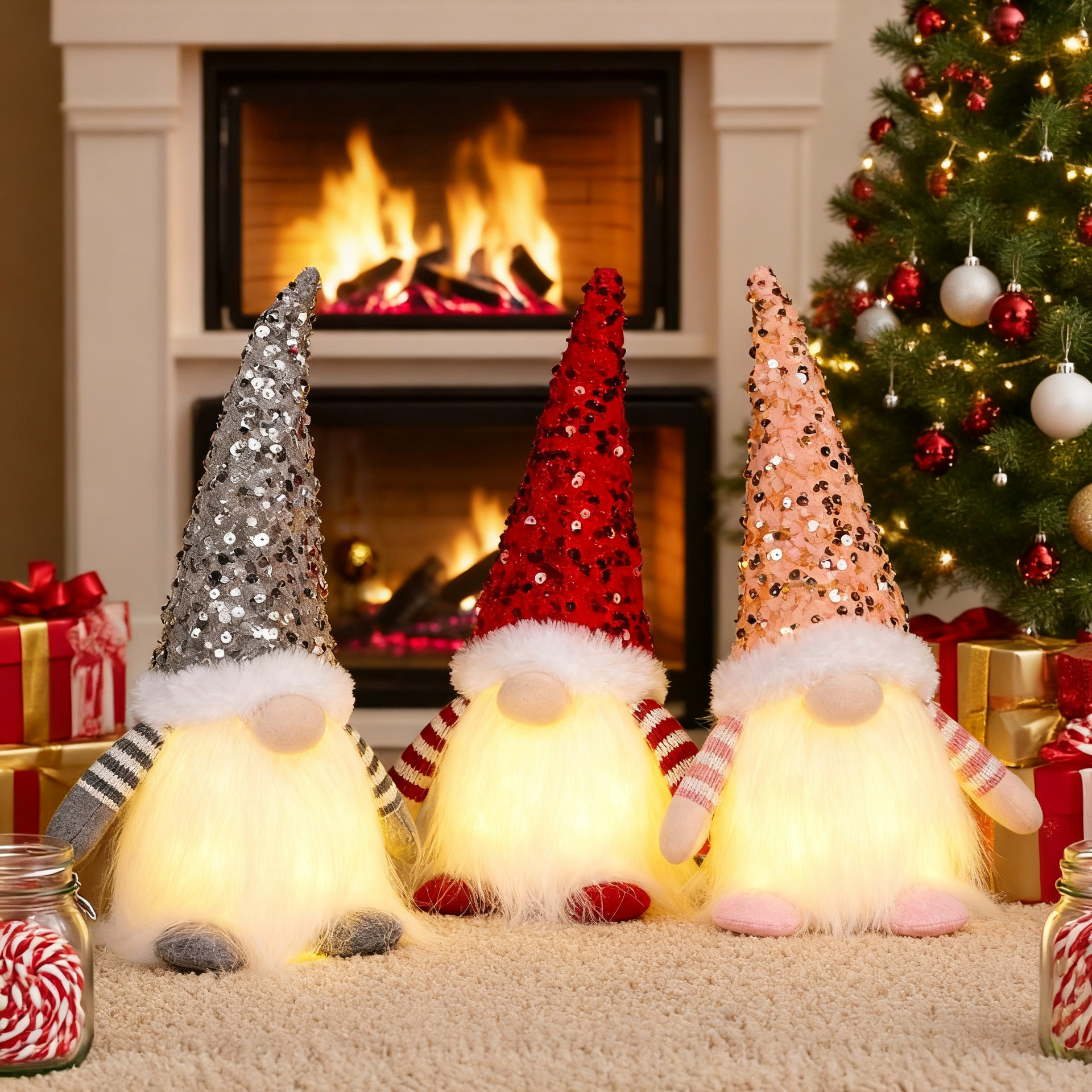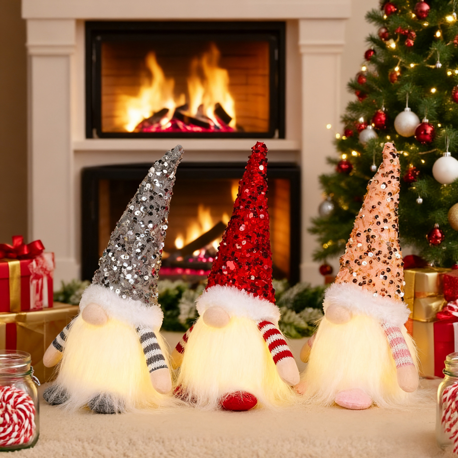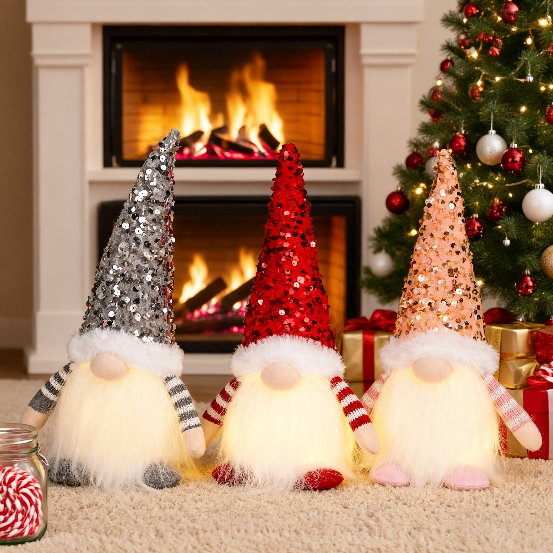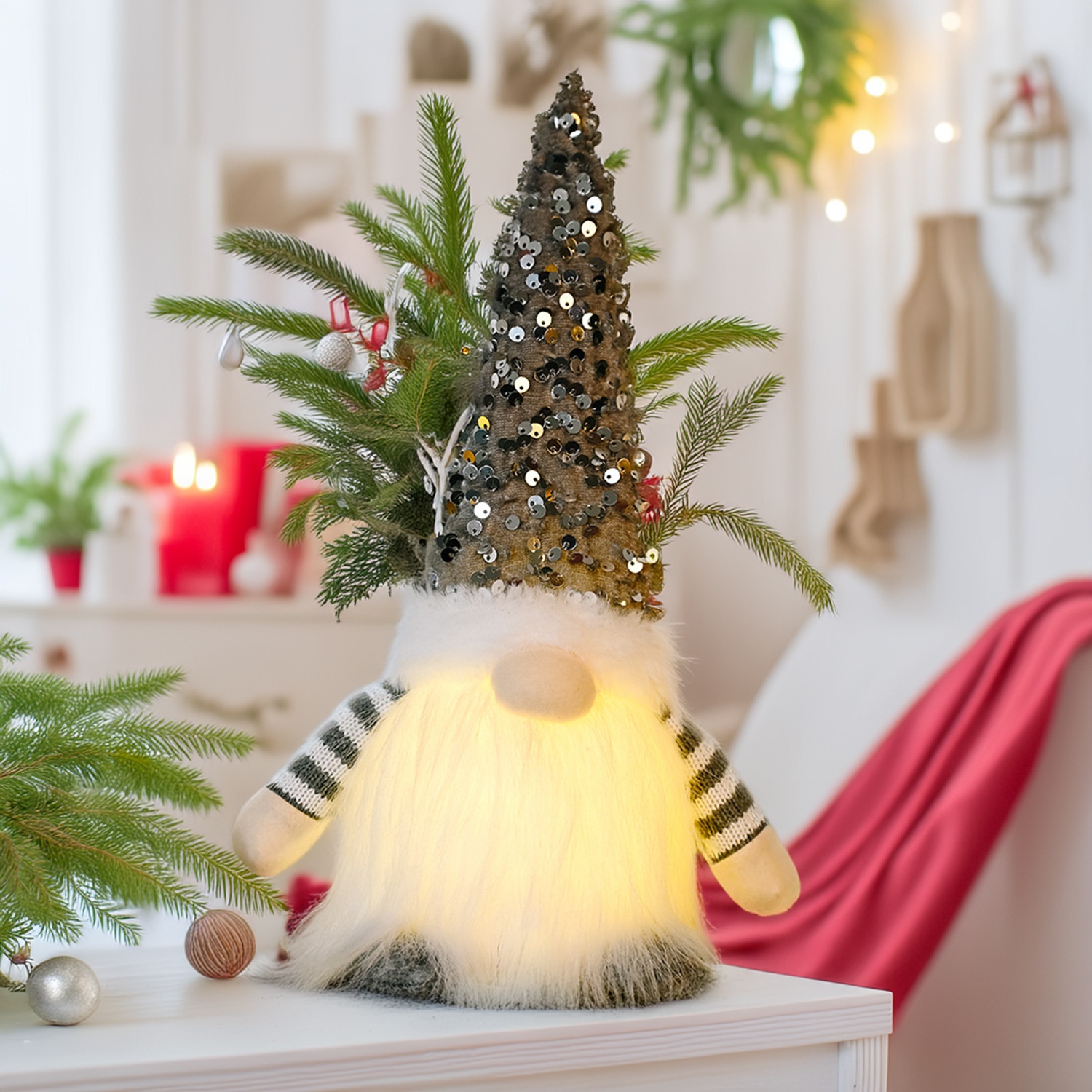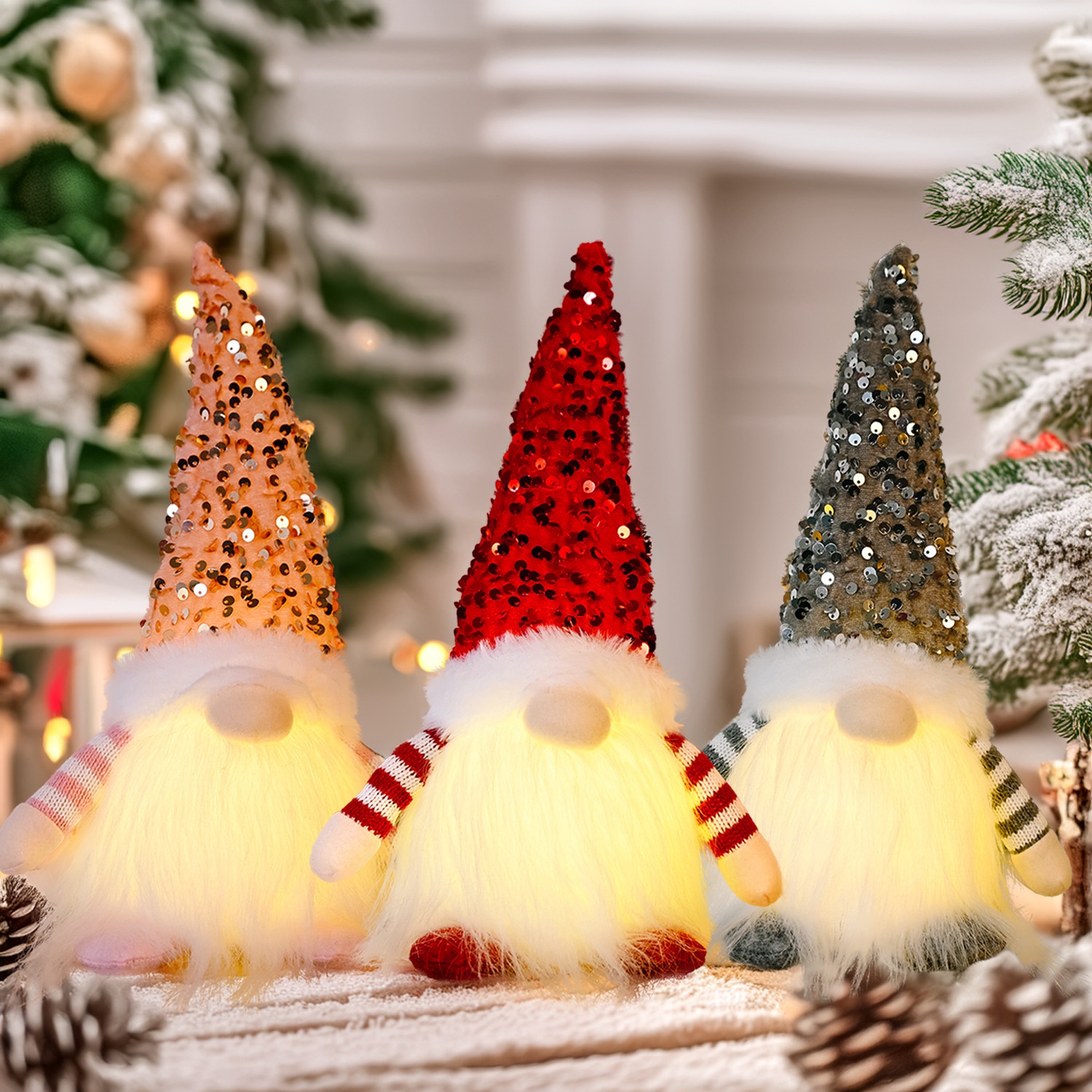 Specifications: E-DD57 Red Beaded Hat Forest Man Ornament, E-DD55 Gray Beaded Hat Forest Man Ornament, E-DD56 Pink Beaded Hat Forest Man Ornament
