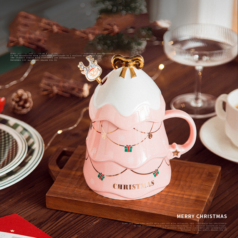 7style: Pink Three-dimensional Christmas Tree Mug (Send Stirring Spoon)