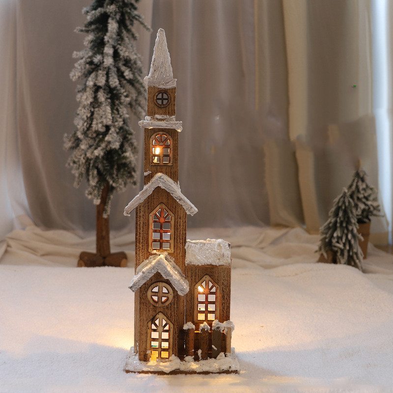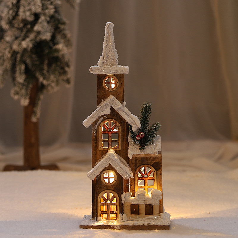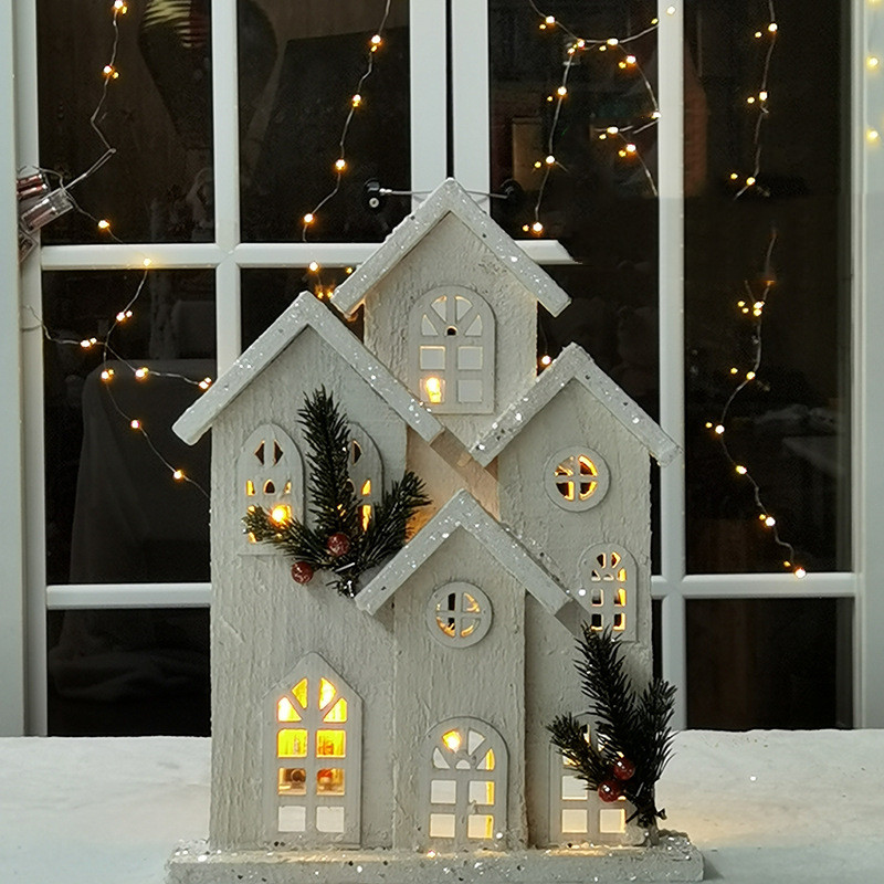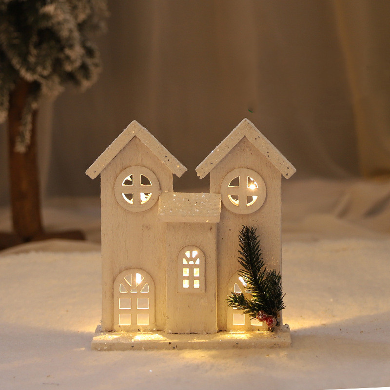 Christmas Decorations Wooden Luminous House Scene Layout