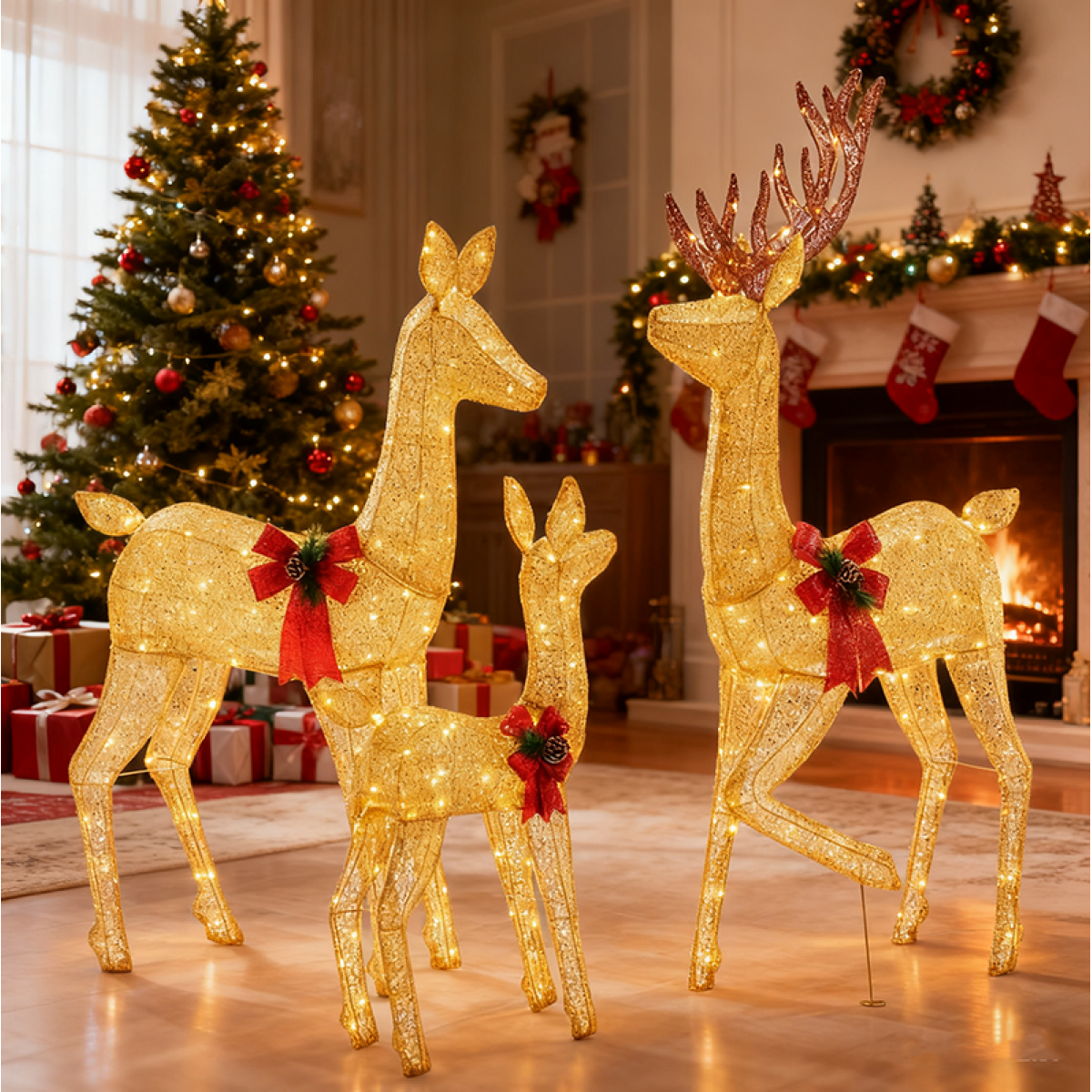 Christmas Deer Outdoor Decoration, LED Metal Holiday Decoration
