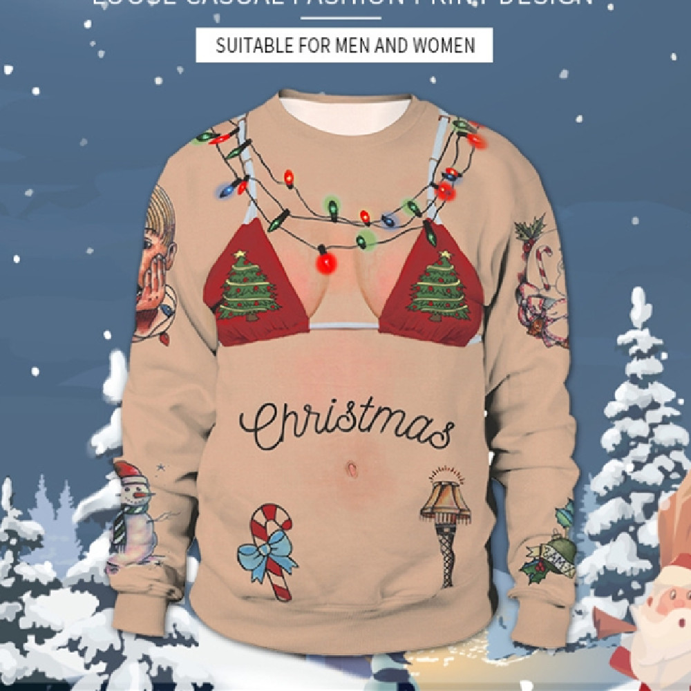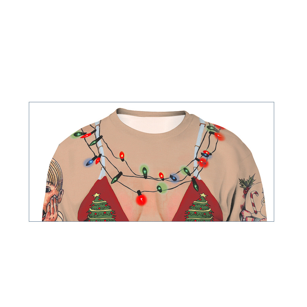 Christmas Digital Printing Alpaca Round-neck Pullover