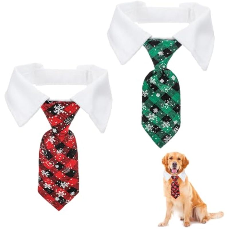 Christmas Dog Necktie, Adjustable Winter Snowflake Pattern Pet Tie Collar With Red Plaid For Small Medium Cat Dog Christmas Weddings Pet Tuxedo Outfit Decoration