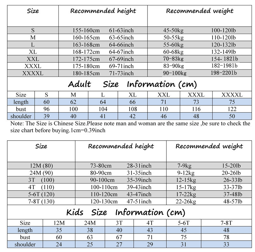 Suitable height: 80cm, 90cm, 100cm, 110cm, 120cm, 130cm, mother S, mother M, mother L, mother XL, mother 2XL, mother 3XL, father M, father L, father XL, father 2XL, father 3XL, father 4XL