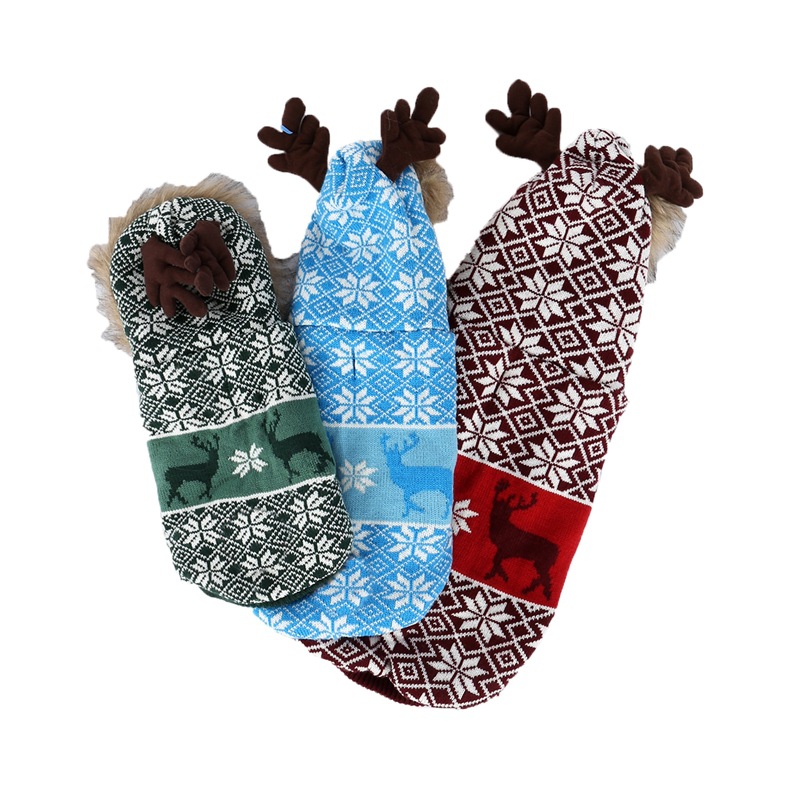 Christmas Elk Vintage Hooded Fur Collar Pet Clothes