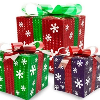 Color: 3-piece set of large, medium and small gift box (red, blue and green),3-piece set of white gold onion warm white light gift box, 3-piece set of color Iris gift box, 3-piece set of PVC laser piece warm white light gift box, PVC printing snowflake three-piece set of gift box