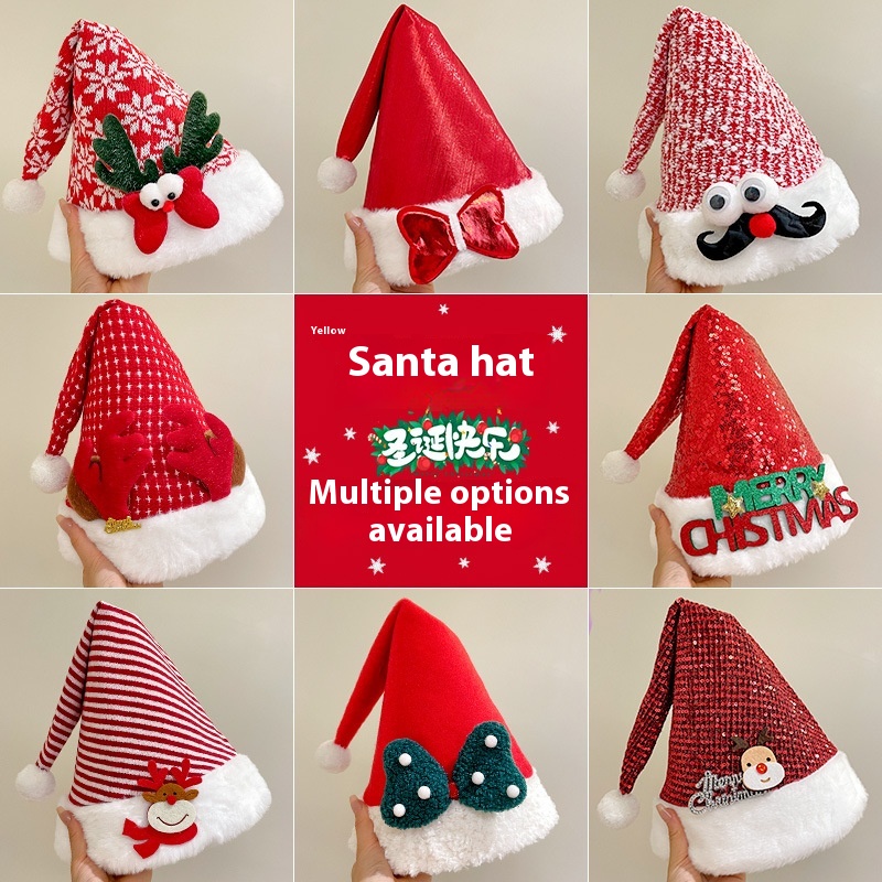 Color: furry bearded old man Christmas hat, furry bow tie elk Christmas hat, furry bow tie snowman Christmas hat, furry reindeer Christmas hat, Rudolf Christmas hat, Alphabet sequins Christmas hat, green bow dot Christmas hat, sequin antlers bow Christmas hat, scarf elk red stripe Christmas hat, green antlers bird Christmas hat, Bell flower antlers Christmas hat, red paillette elk Christmas hat, ears red antlers Christmas hat, bow red Christmas hat, knitted Santa Claus snowflake hat, red Stripes Christmas hat, red and white stripes Christmas hat, sequins Christmas hat, Santa Claus snowflake hat, Snowman snowflake Christmas hat, Elk snowflake Christmas hat, blush Santa Claus Christmas hat, blush elk Christmas hat, big red Christmas hat, small size red Christmas hat