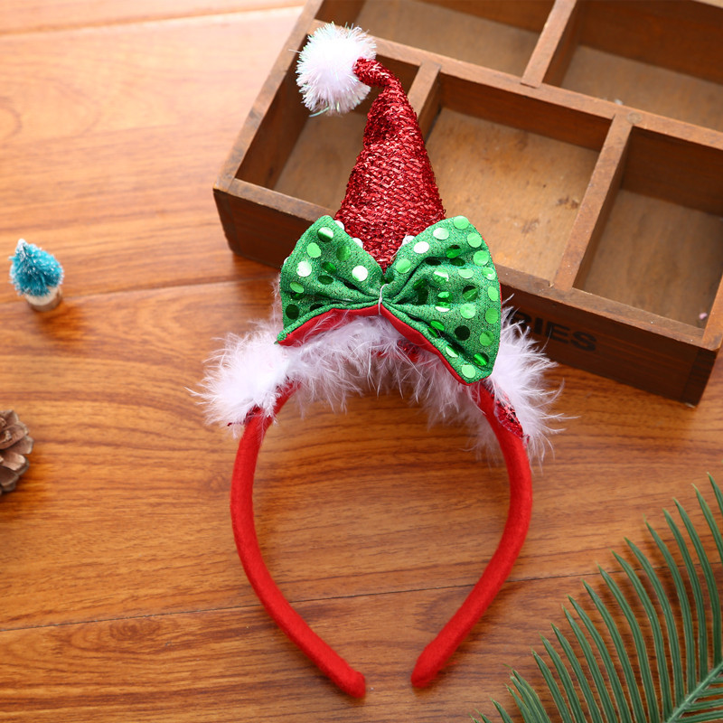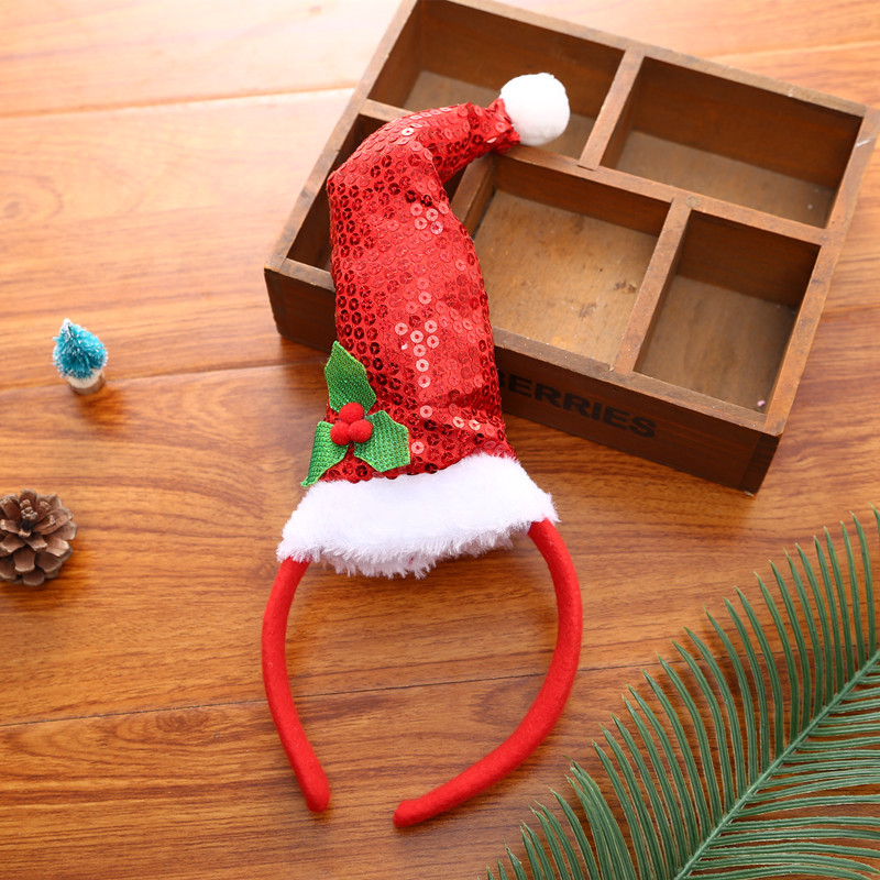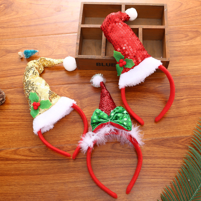 Specifications: Red paillette Christmas hat headband, yellow sequins Christmas hat headband, headband style 3