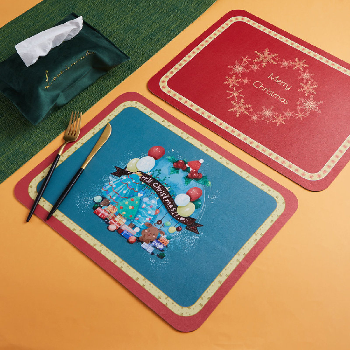 Specification: Christmas printed leather placemat 40*30cm