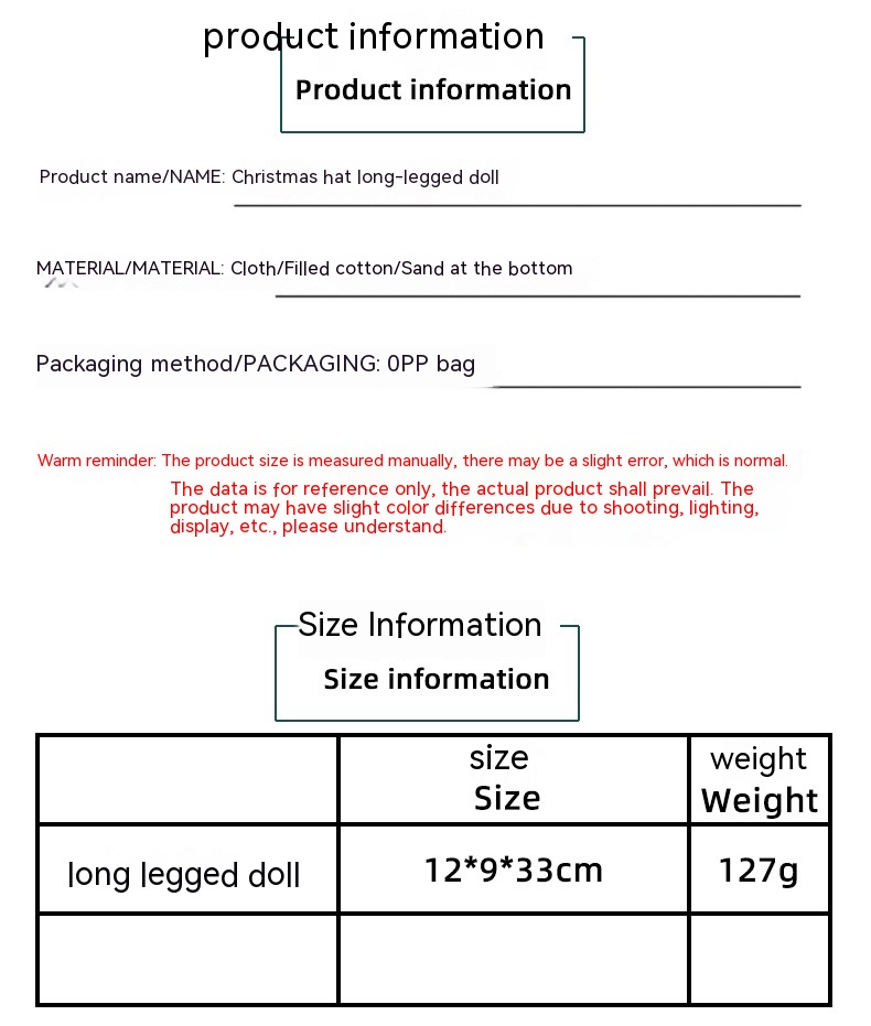 Name: Christmas hat long leg doll