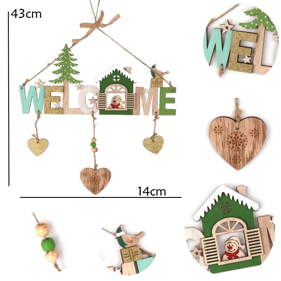 Material: woodSize: Length 29.5 Width 14 Total Length 43cmColor: old man, snowman, elkUses: Family Christmas party accessories