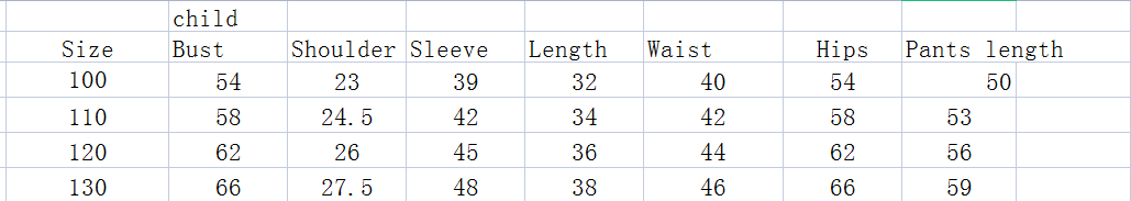 | Baby's size | Bust(cm) | Shoulder(cm) | Sleeve(cm) | Length(cm) |