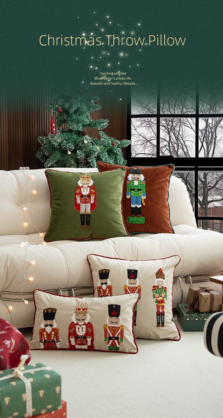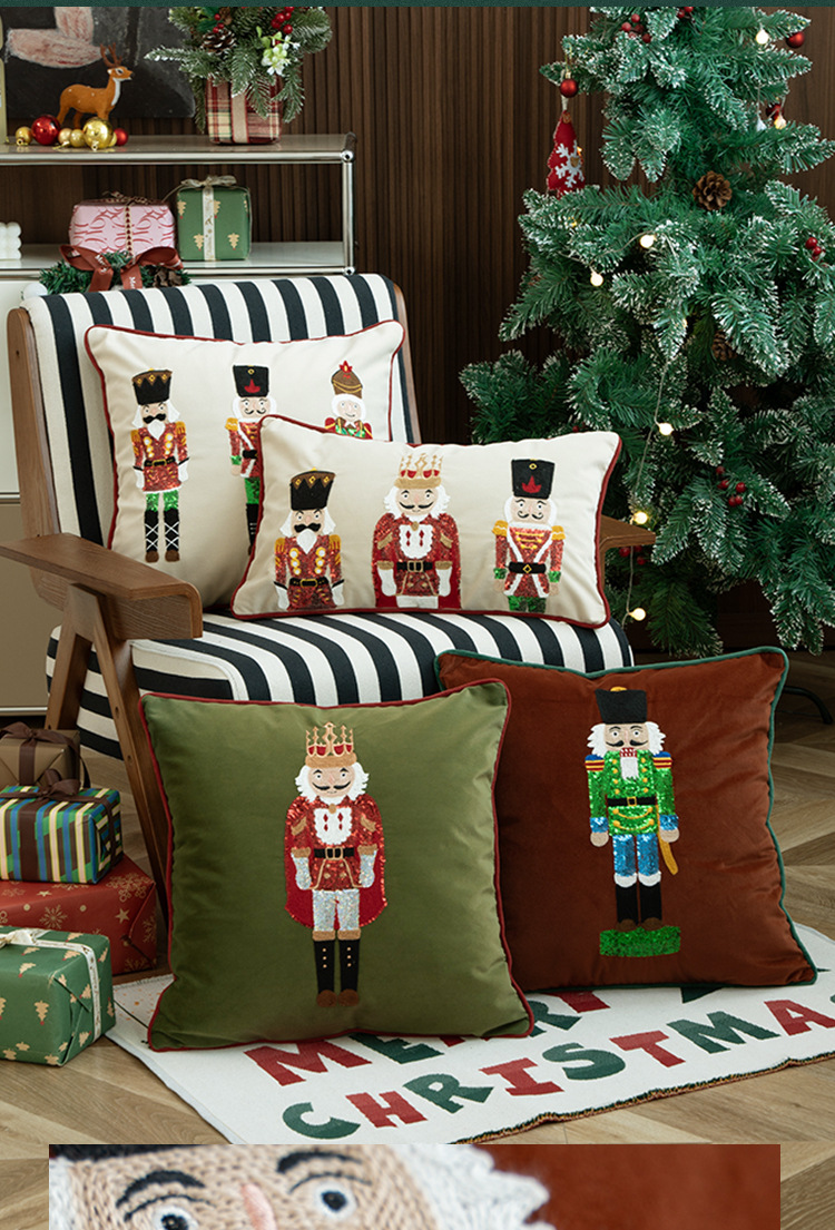 Color: Nutcracker Baby Velvet Sequins Embroidered Waist Pillowcase - Beige, Nutcracker Baby Velvet Sequins Embroidered Pillowcase - Beige, Nutcracker Baby Velvet Sequins Embroidered Pillowcase - Green, Nutcracker Baby Velvet Sequins Embroidered Pillowcase - Maroon