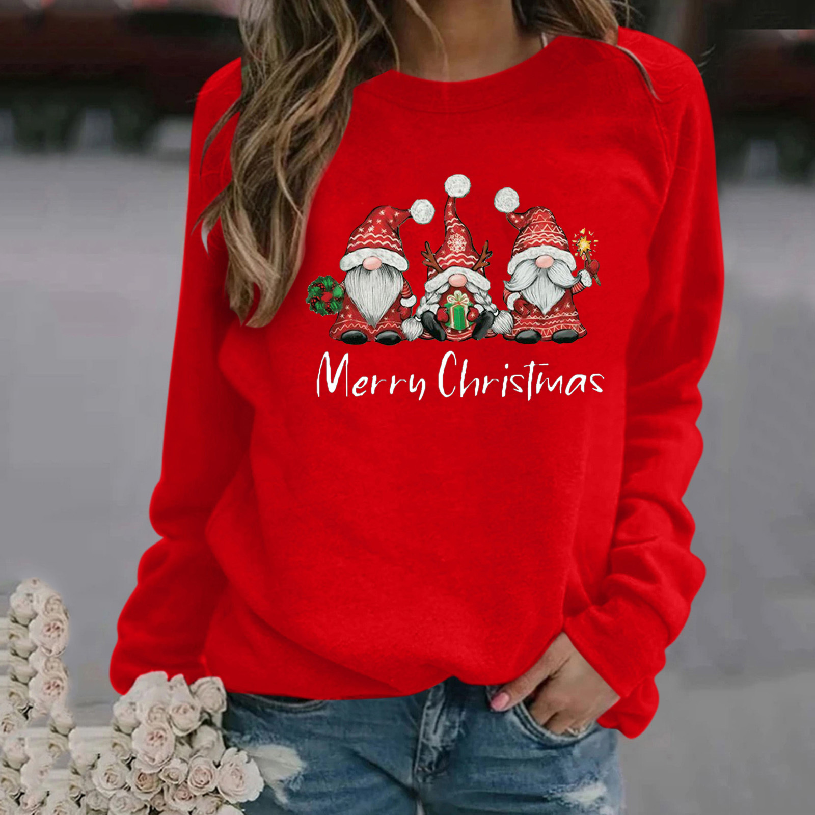 Christmas Pattern Printed Long Sleeve Round Neck Sweater Women