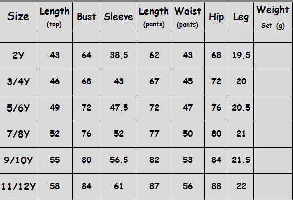 Size: Child 2Y, Child 3or4Y, Child 5or6Y, Child 7or8Y, Child 9or10Y, Child 11or12Y, Ladies S, Ladies M, Ladies L, Ladies XL, Ladies 2XL, Men S, Men M , Men's L, Men's XL, Men's 2XL Unit: cm