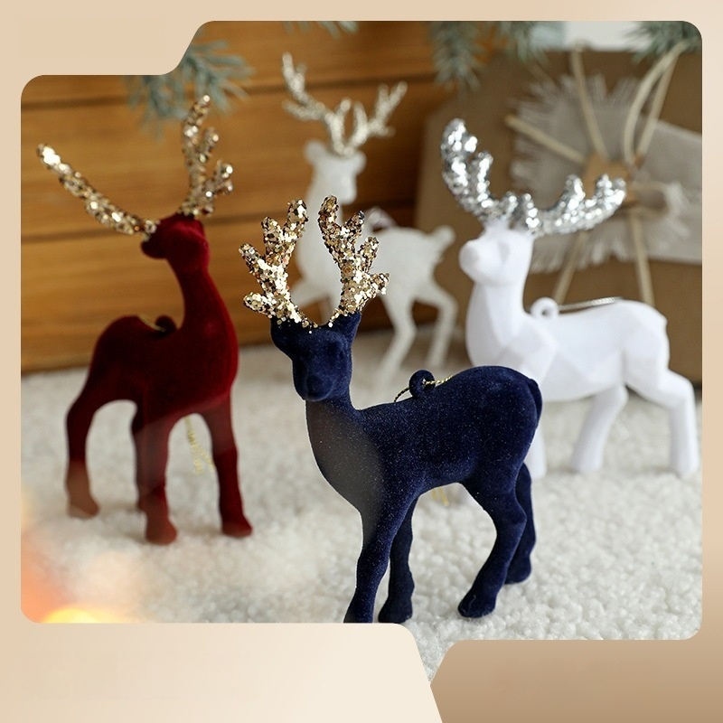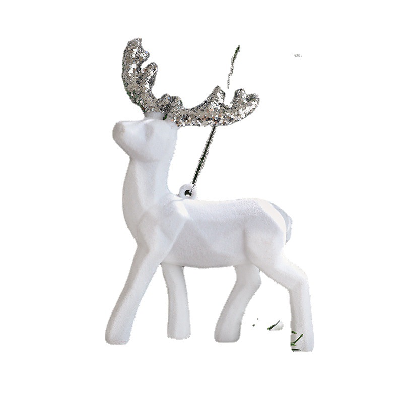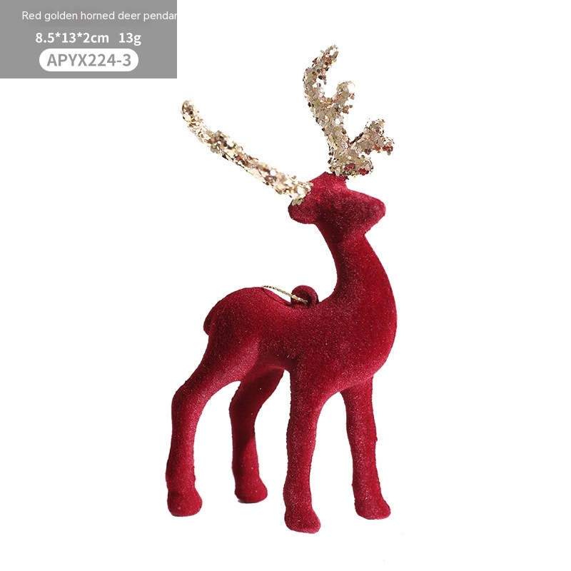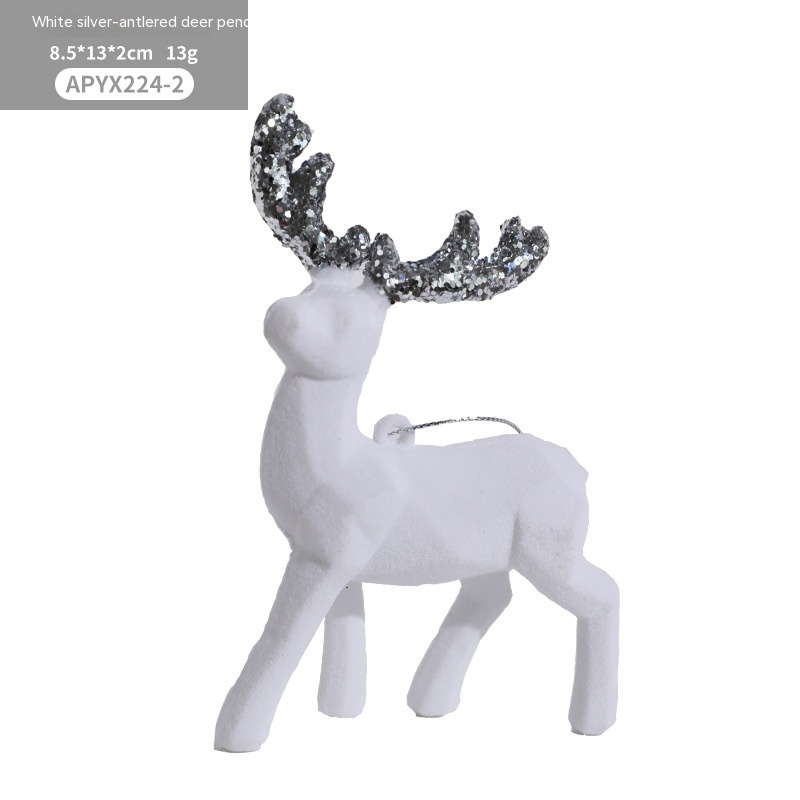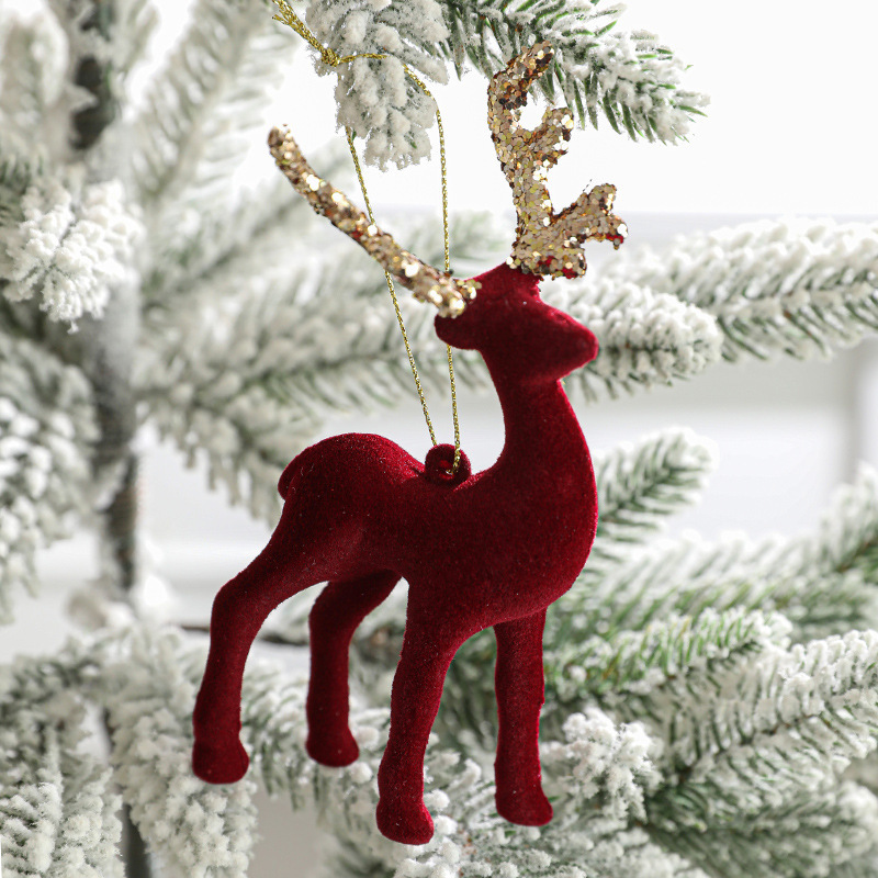 Christmas Red Flocking Elk Pendant White Glitter Cake Ornaments Decorations