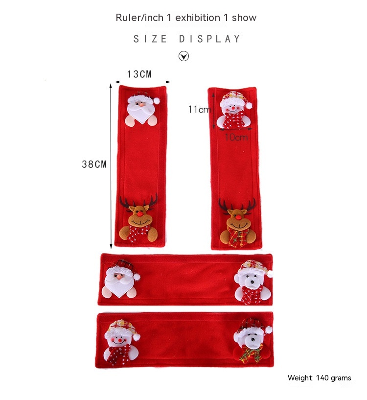 Specifications: A red linen A boy with A big head refrigerator handle gloves, C red linen plaid doll refrigerator handle gloves, D Red single head refrigerator handle gloves, E red plaid doll refrigerator handle cover, F wine red full body doll refrigerator handle cover, eight-piece set refrigerator handle gloves, two-piece refrigerator handle-wife deer, two-piece refrigerator handle-snowman with bear