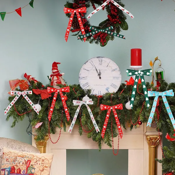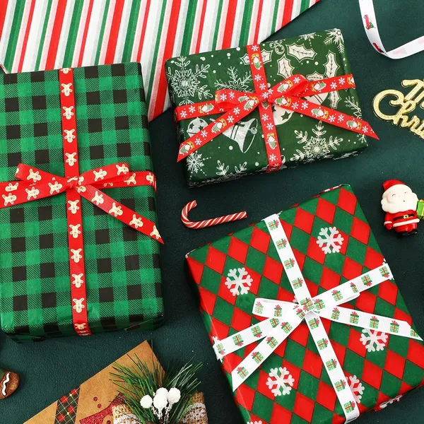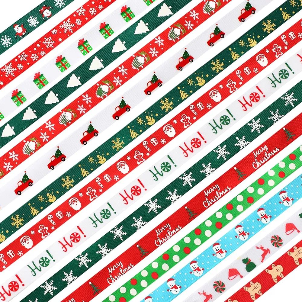 Christmas Ribbon, 15 Yards 3/8 Inch Christmas Grosgrain Ribbons For Gift Wrapping, Christmas Festival Pattern Printed Ribbon For DIY Crafts Xmas Holiday