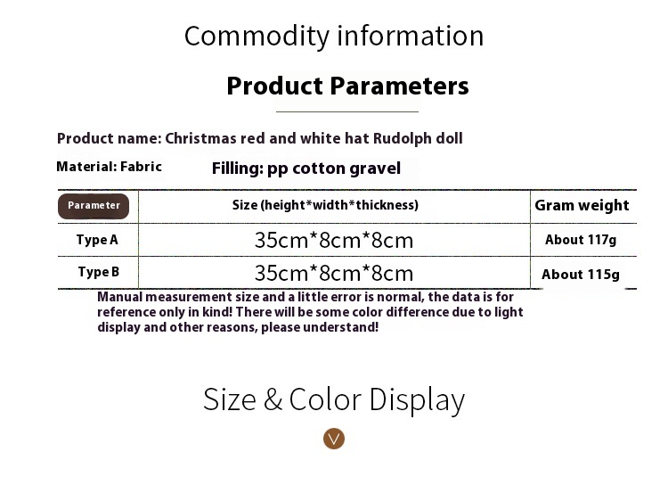 Product Name: Christmas Red and White Hat Rudolf Doll