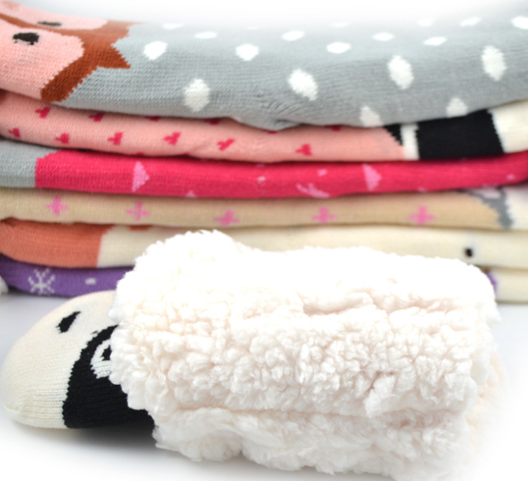 Autumn and winter plus velvet thick socks women's socks extra thick cotton socks ladies long tube warm floor socks wool lambskin double layer