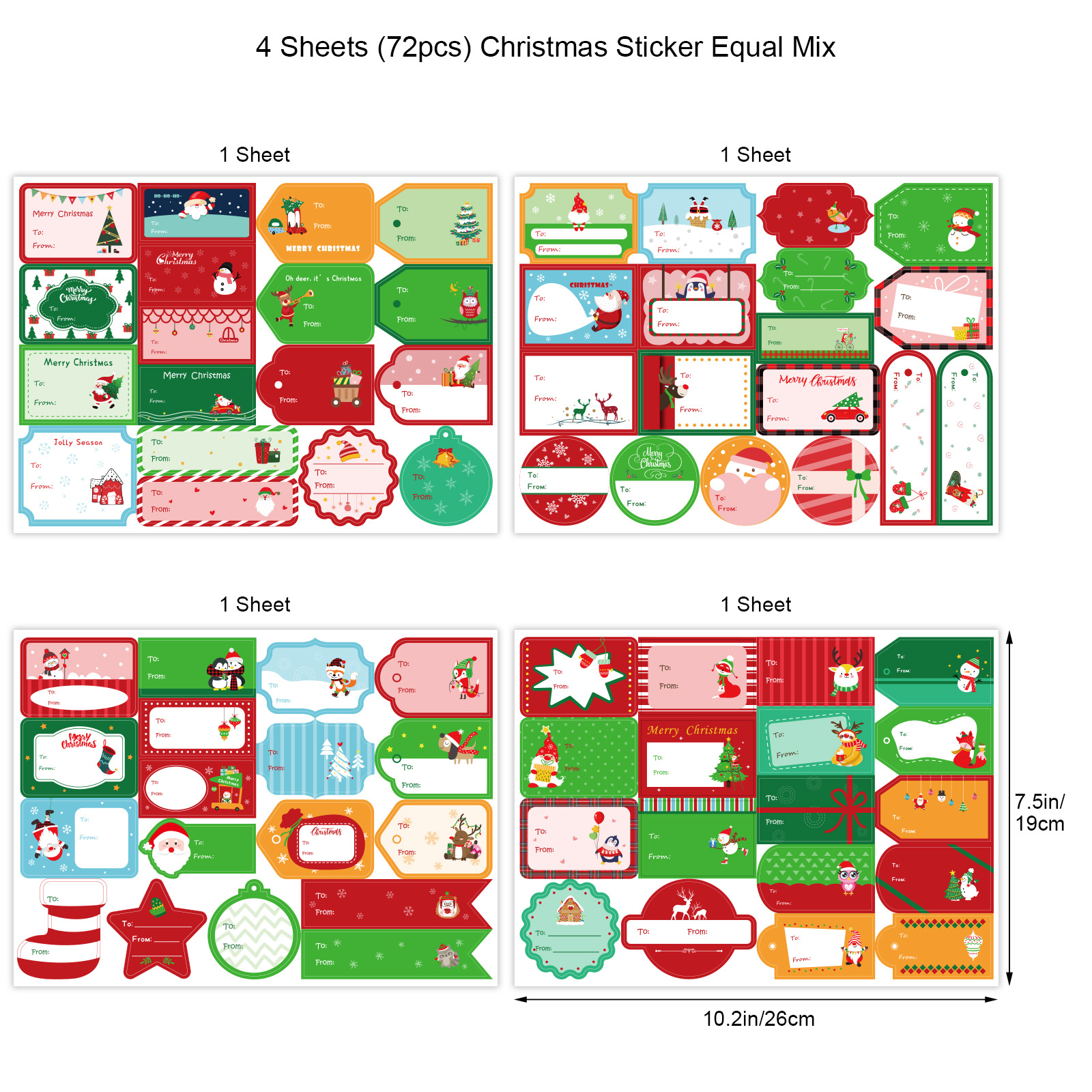 Color: 1 pack of 4 large sheets (72 stickers with different christmas patterns in total)