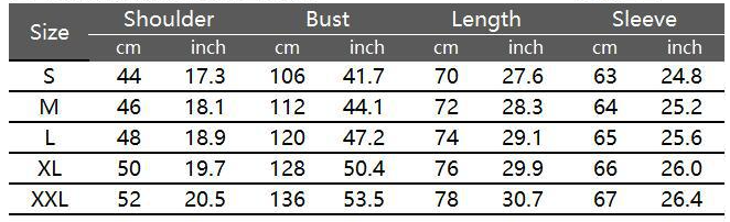 1. Asian sizes are 1 to 2 sizes smaller than European and American people. Choose the larger size if your size between two sizes. Please allow 2-3cm differences due to manual measurement. 2. Please check the size chart carefully before you buy the item, if you don't know how to choose size, please contact our customer service. 3.As you know, the different computers display colors differently, the color of the actual item may vary slightly from the following images.