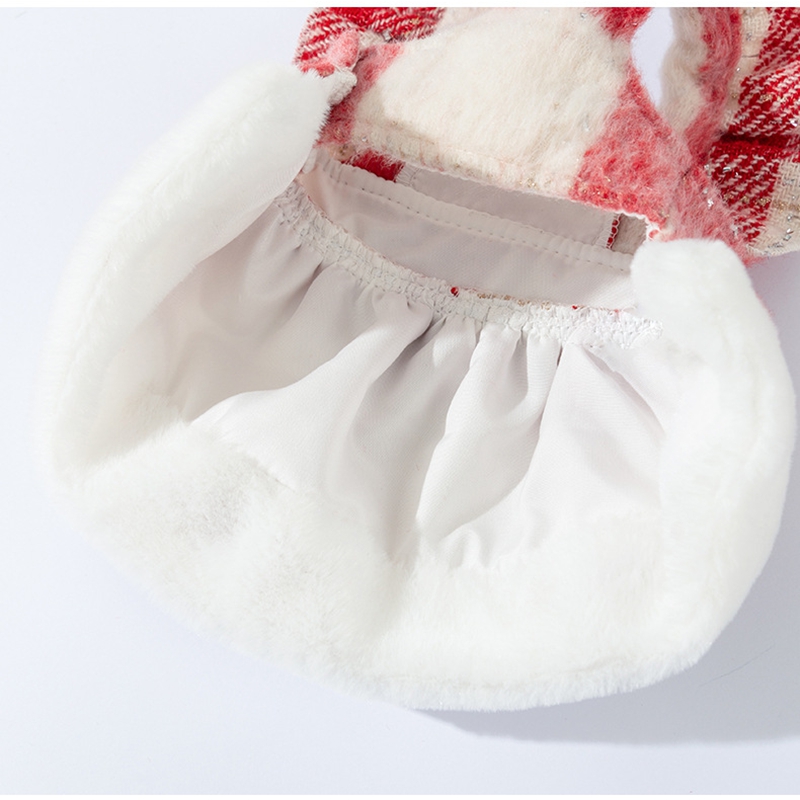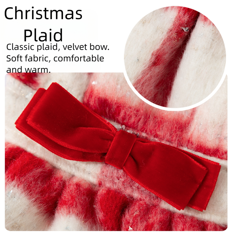 - Chic Festive Design: Features a red-and-white plaid pattern (with subtle glitter accents) + soft fluffy trim (for warmth and cuteness) + a bold red velvet bow (adds a playful, elegant touch).