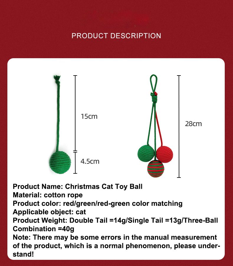 Christmas Toys For Cats Cotton Rope Ball Interactive Sisal Ball Hanging Decoration