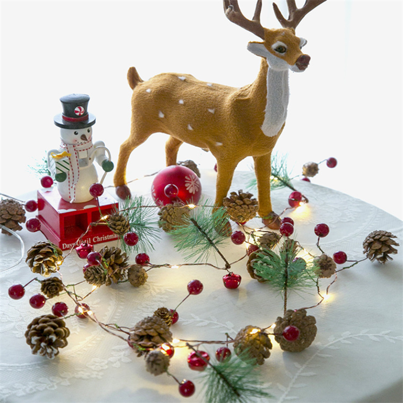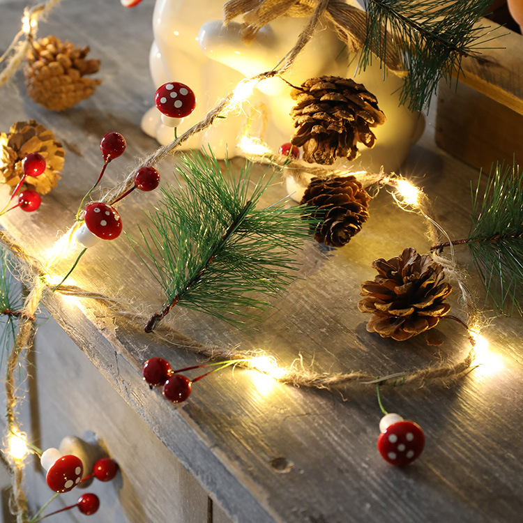 Light color: Christmas pine cone tree five-star copper line lamp 2 meters 20 lights ,Pine needles, pine cones, mushrooms, 2 meters, 20 lights, battery, red fruit copper wire lights, 2 meters, 20 lights, battery, green leaf,