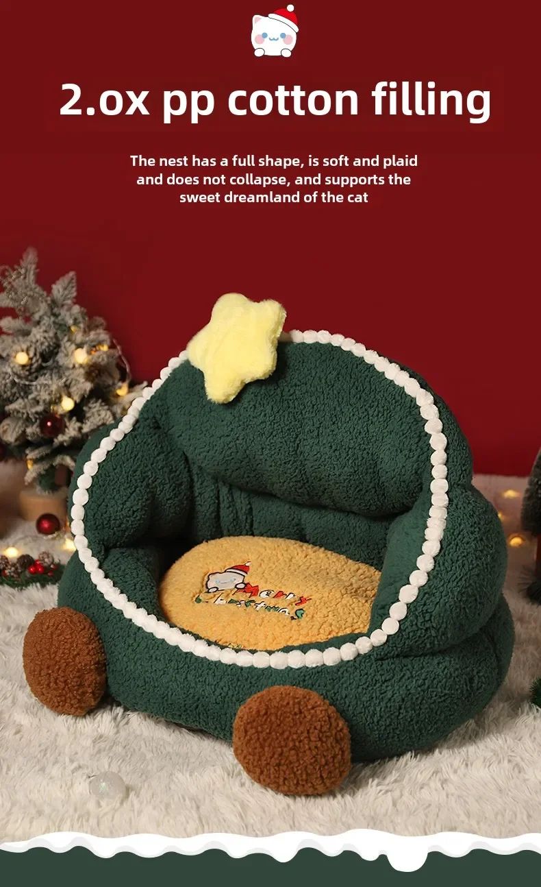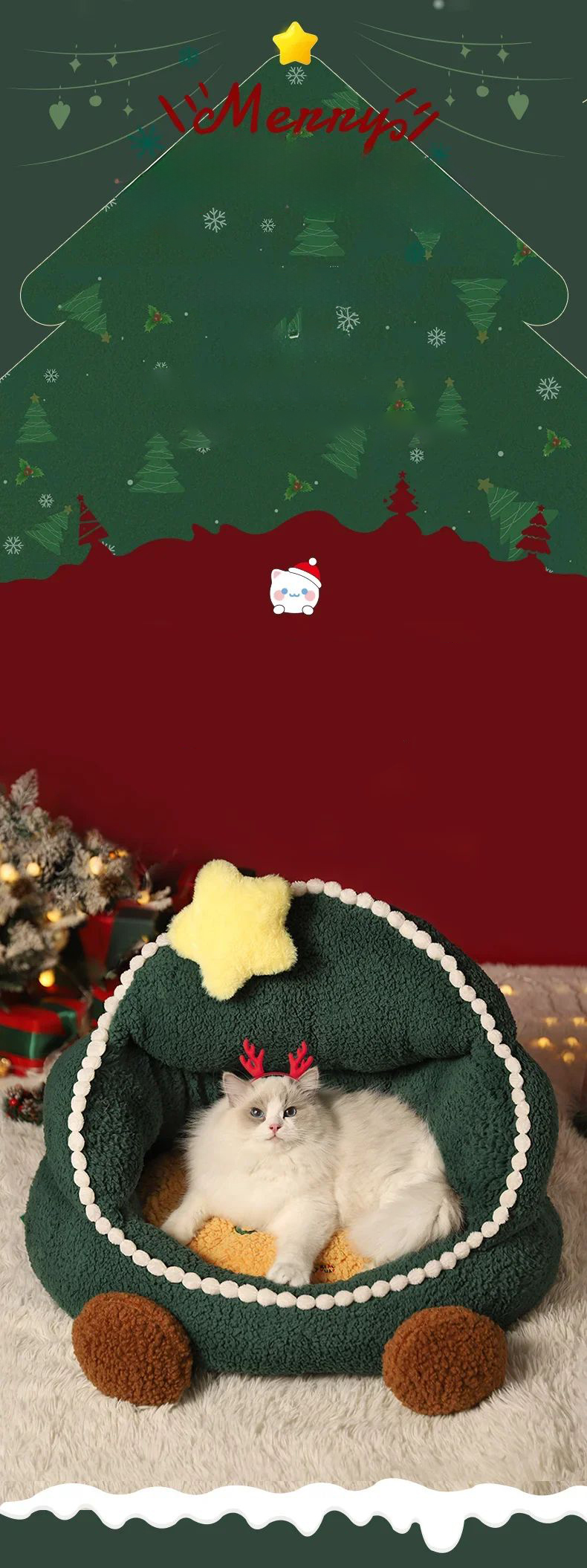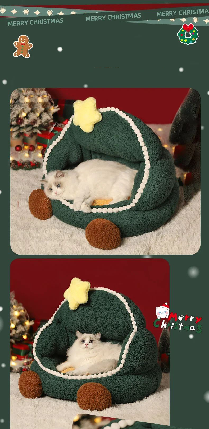 Christmas Tree Cat Nest, Warm In Winter, Removable And Washable , Universal In All Seasons, Closed Pet Nest