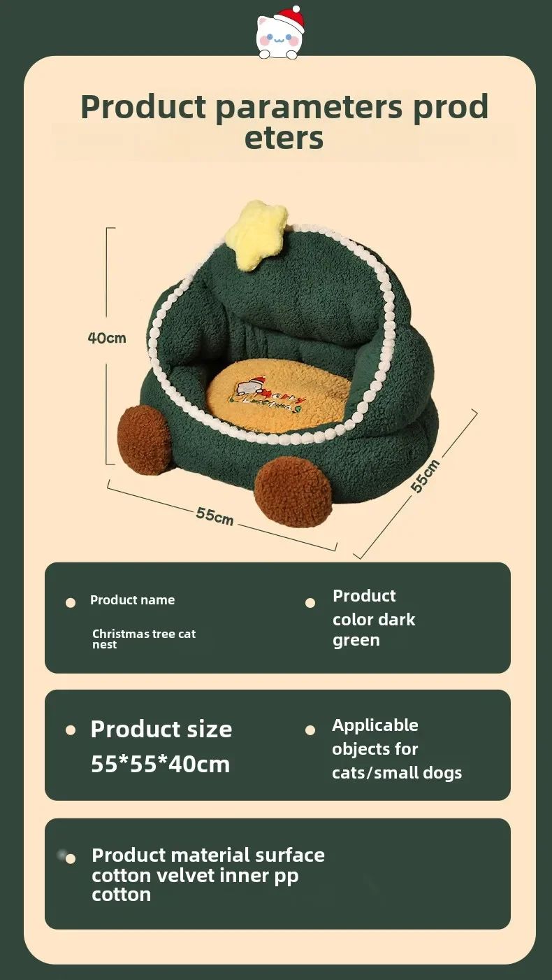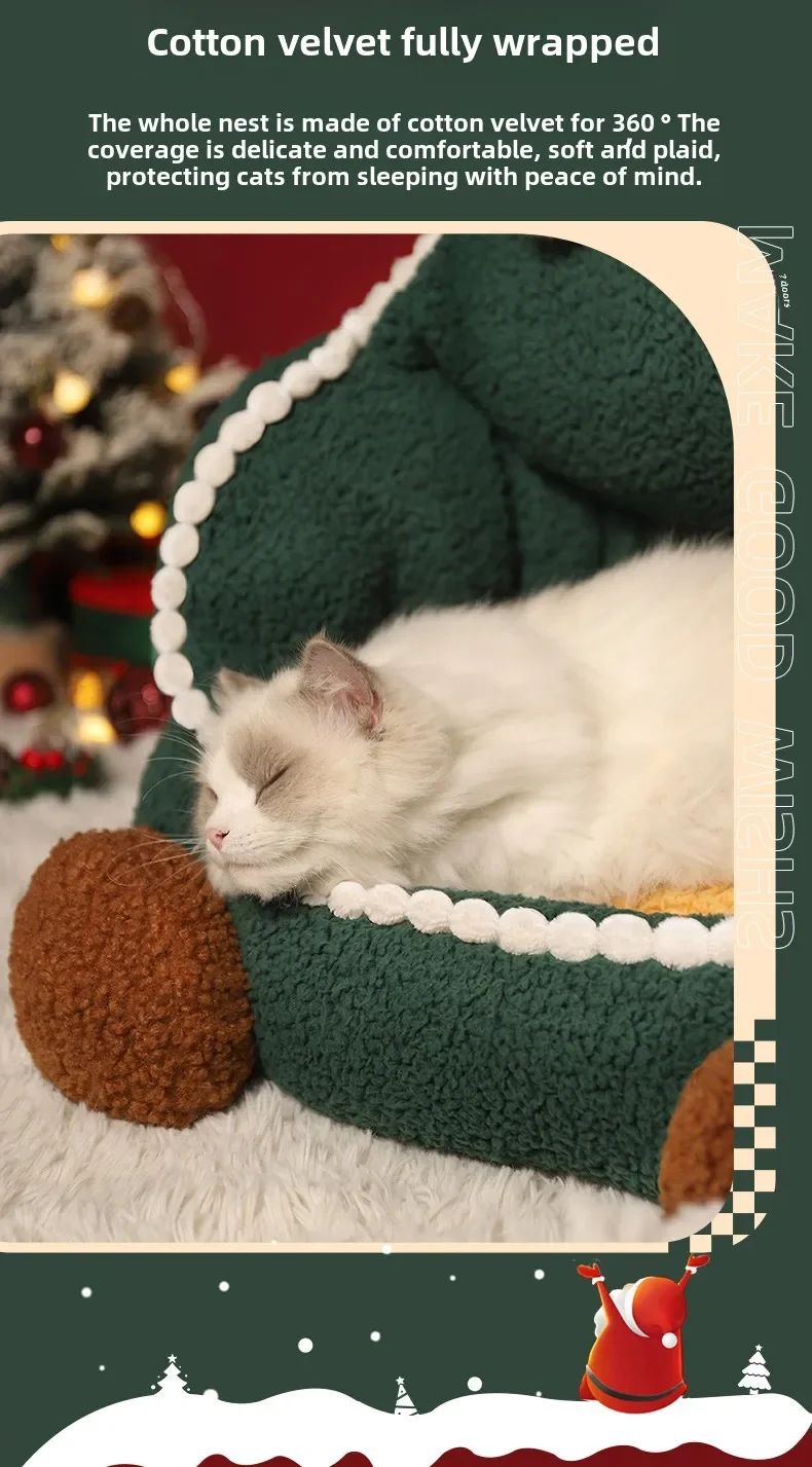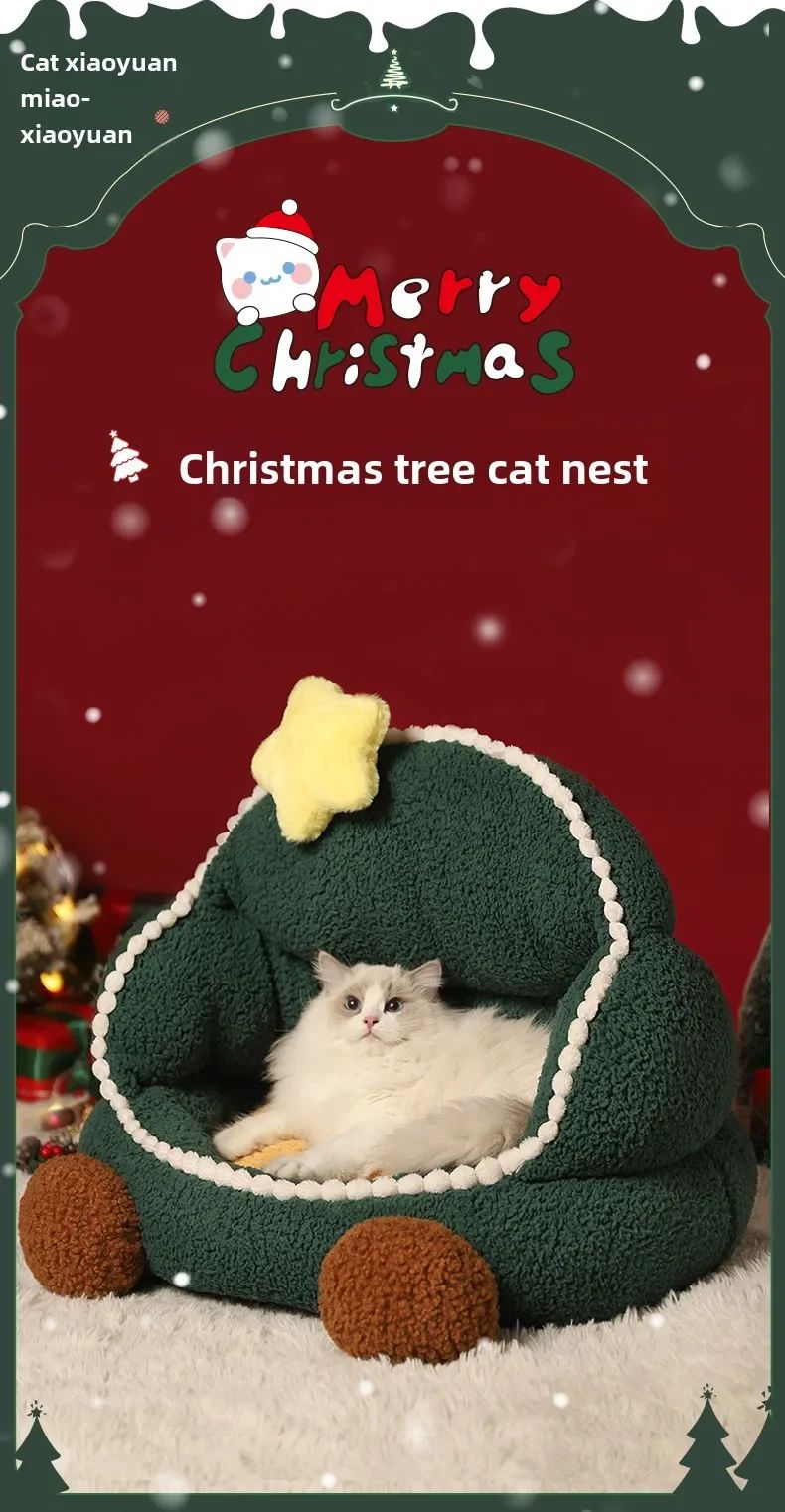 Christmas Tree Cat Nest, Warm In Winter, Removable And Washable , Universal In All Seasons, Closed Pet Nest