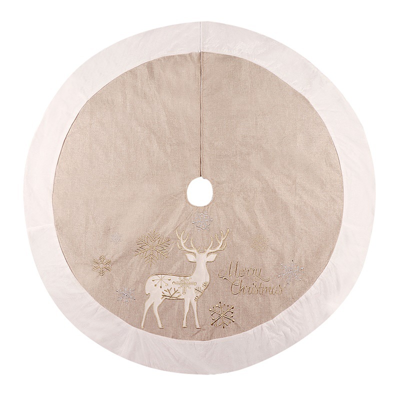 Product information:Material: linen Specification: 48-inch gold Wht linen tree skirt Craft: Christmas tree decoration Category: Tree Skirt
