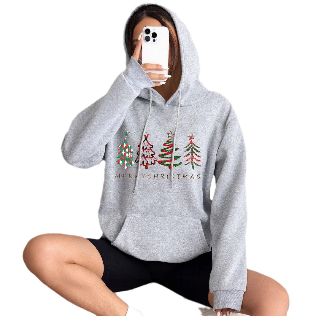 Christmas Tree Digital Printed Hooded Long Sleeve Sweater