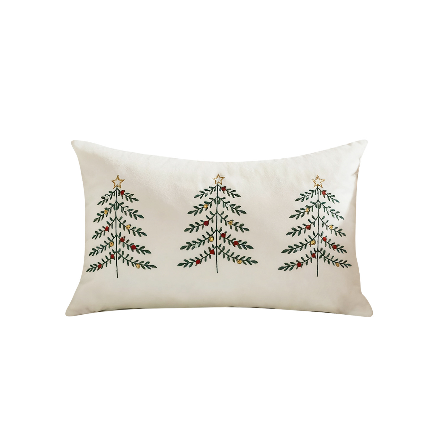 Color: White three Christmas tree lumbar pillow, Red three Christmas tree lumbar pillow, Dark green three Christmas tree lumbar pillow