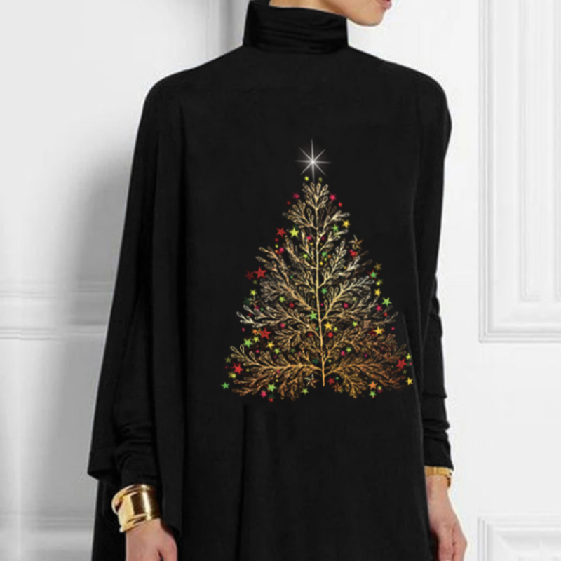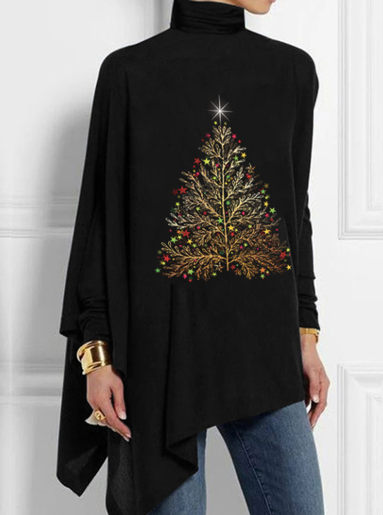 Christmas Tree Printed Women's Turtleneck Tops