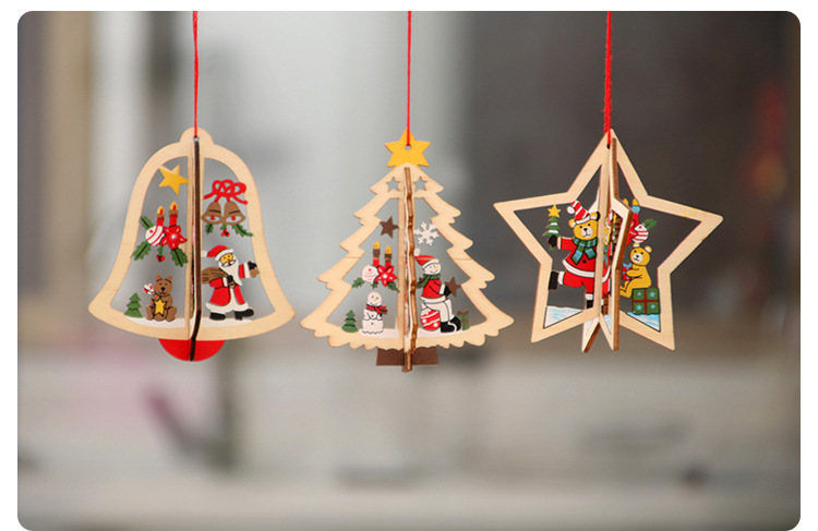 Specifications: three-dimensional red snowflake, three-dimensional bell old man, three-dimensional tree snowman, three-dimensional five-pointed star bear, one piece five-star deer, one piece gift