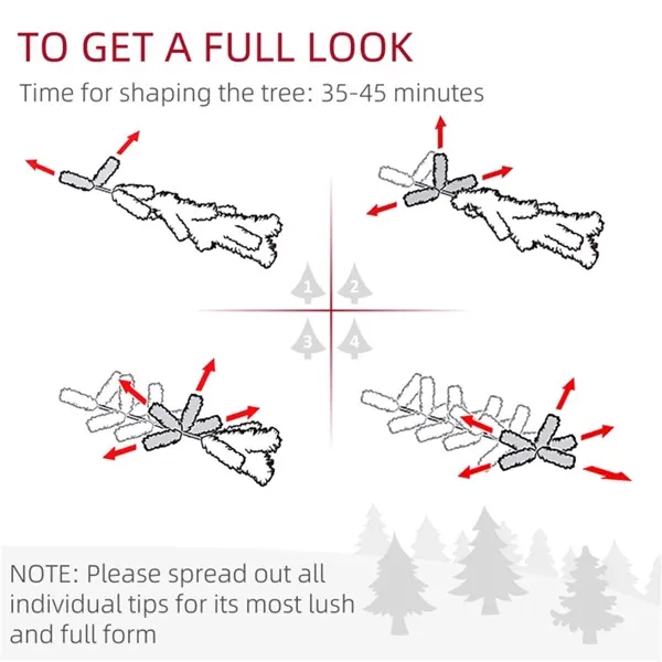 In order to get a full appearance, please spread out all individual tips to get optimally possible look from the tree, suggest you to take 35-45 minutes to shape the tree.