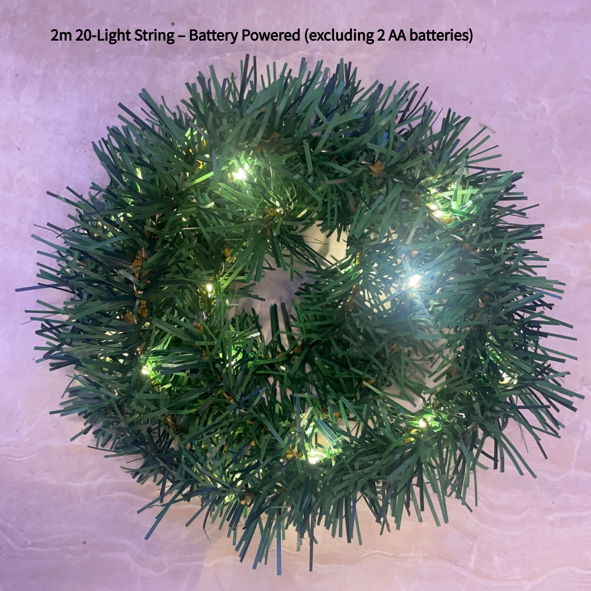 Power Supply: 2-meter, 20-light battery-powered version (batteries not included: 2 AA batteries); 3-meter, 30-light battery-powered version (batteries not included: 2 AA batteries); 5-meter, 50-light battery-powered version (batteries not included: 3 AA batteries); 10-meter, 100-light battery-powered version (batteries not included: 3 AA batteries)