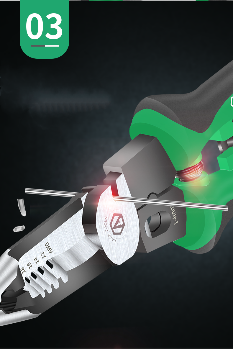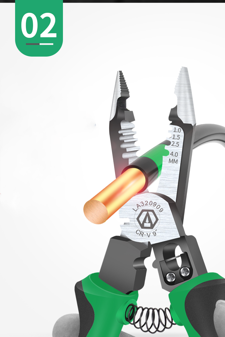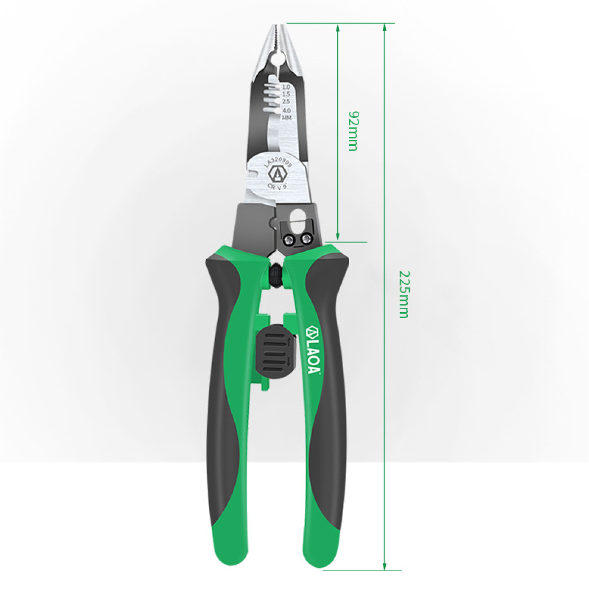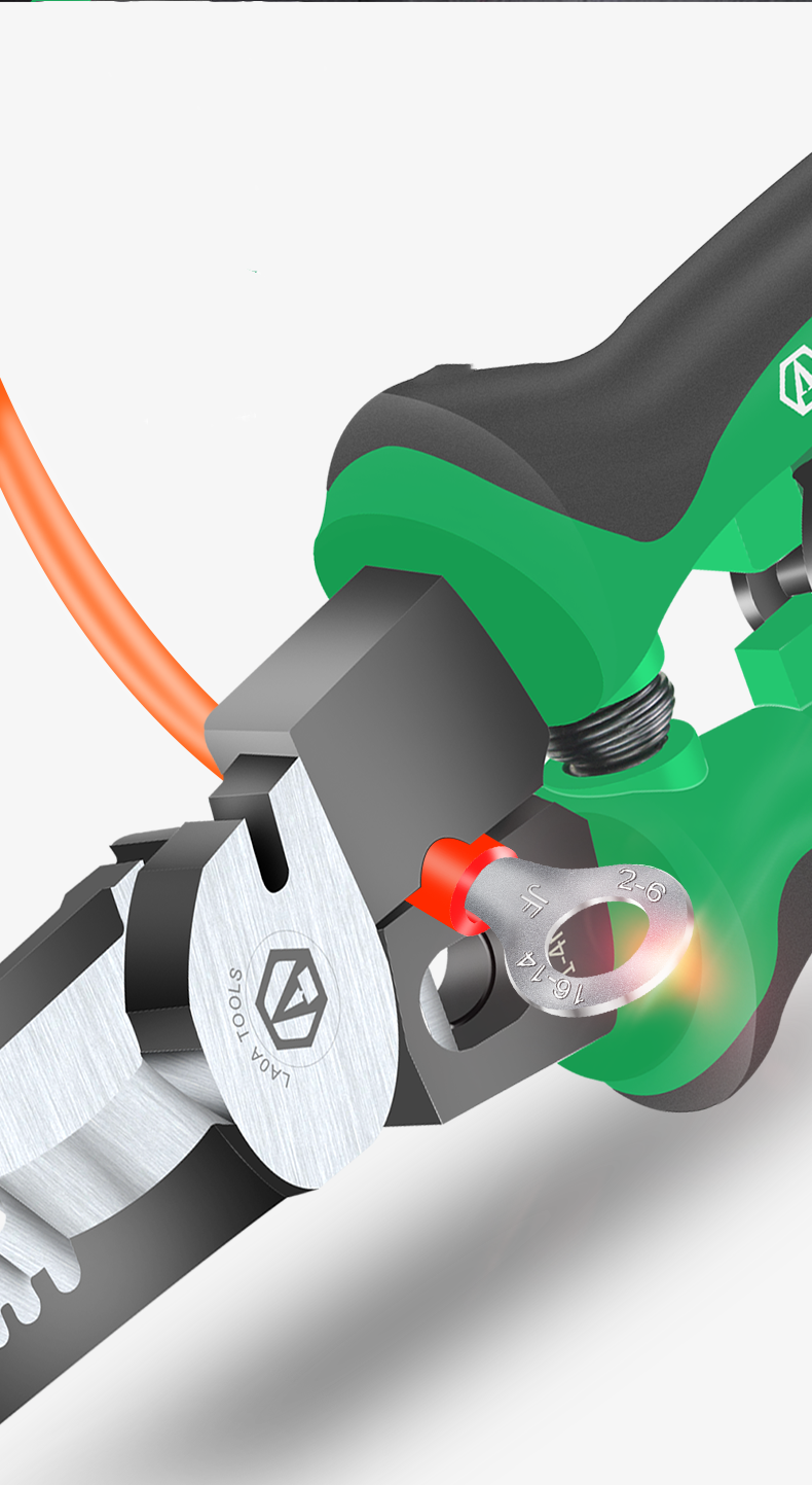 6-in-1 multifunctional design, which integrates clamping, cutting, stripping, cutting iron wire, and crimping terminal