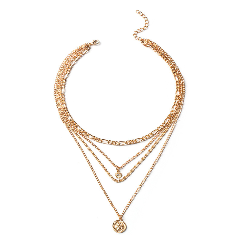 CHUNKY GOLD NECKLACE: The layered coin necklace has a stunning design that looks classic strung along a delicate chain.