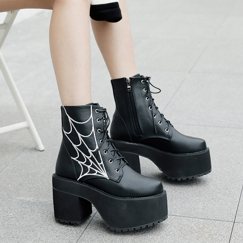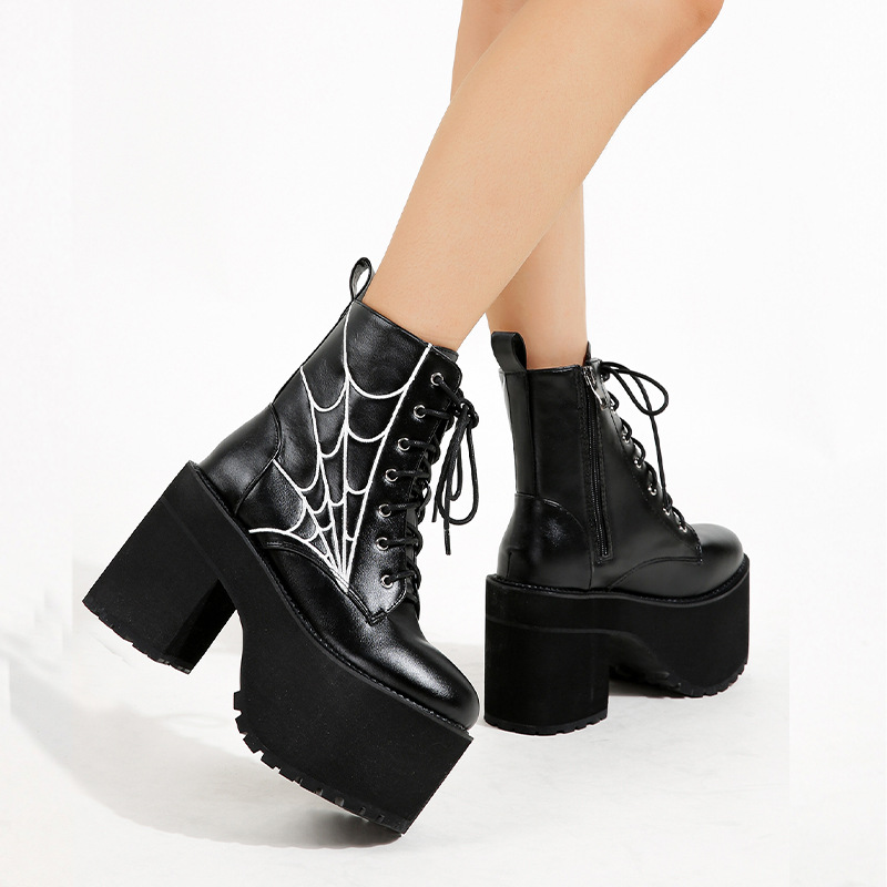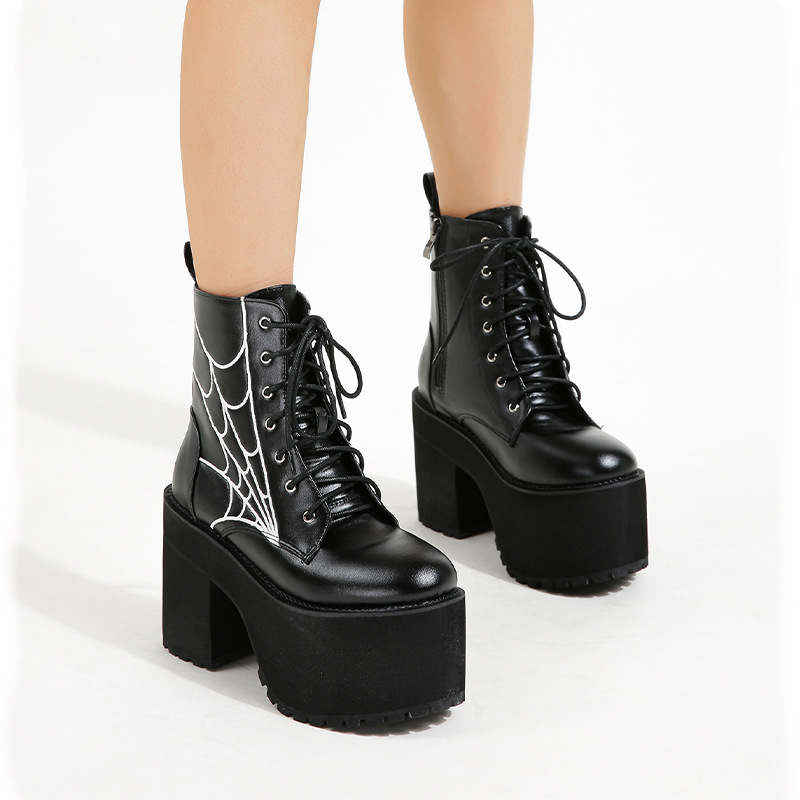 Chunky Heel Waterproof Platform Round Toe Women's High Heel Boots Large Size Shoes