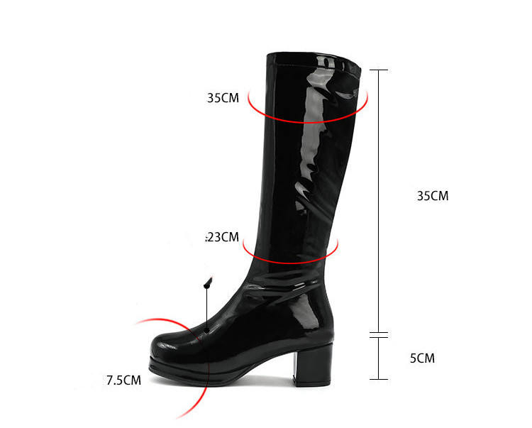 Chunky Heel Women's Mid Heel Boots Patent Leather High Leg Boot Square Toe Boots