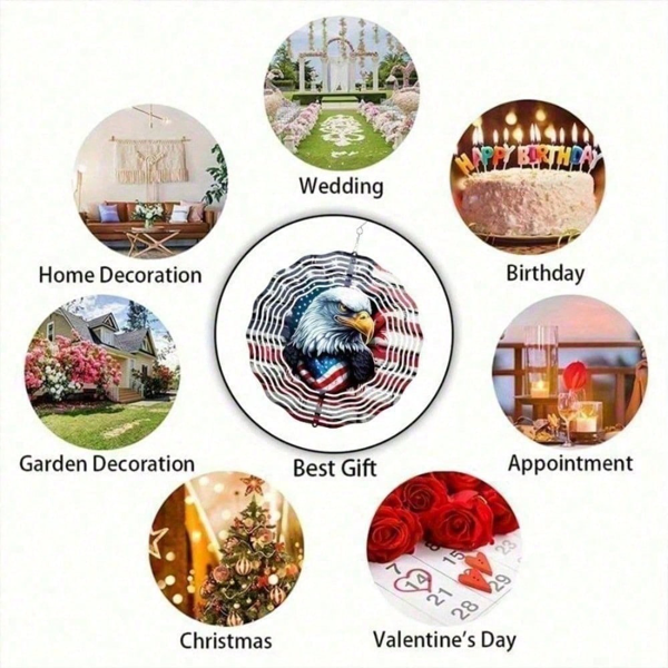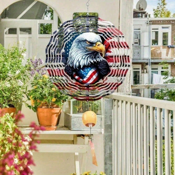 Enhance your outdoor space with our stunning 3D spinning patriotic wind spinner, featuring a dynamic eagle and American flag design that rotates gracefully in the breeze, creating a captivating display for your yard, patio, or garden.Crafted from durable iron, this patriotic wind spinner features a vibrant American flag and eagle design with smooth spinning motion for all weather conditions, perfect as a decorative gift for patriotic holidays or year-round outdoor display with easy assembly and weather-resistant finish.For detailed size specifications, please refer to the size chart.