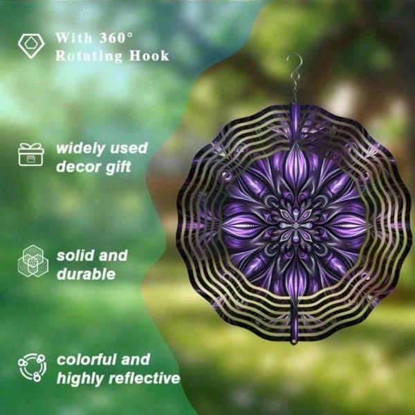 Elevate your outdoor space with our 4-in-1 Solar Powered Wind Spinner, an elegant iron art piece that adds dynamic beauty to any garden, patio, yard, or balcony.This iron spinner features a durable, weather-resistant design with a solar-powered LED light for enchanting nighttime displays. Its mandala-inspired patterns create a mesmerizing visual effect as it spins gently in the wind, making it a unique decorative accent and a perfect gift for various occasions.For detailed size specifications, please refer to the size chart.