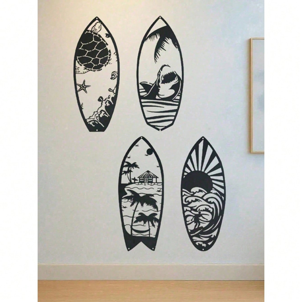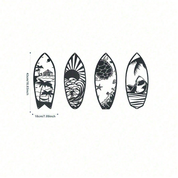 CIFbuy 4 Piece Metal Surfboard Wall Art Coastal Beach House Decor Modern Sculpture For Living Room Bedroom Kitchen Gift(TikTok, Temu Pick-up Service)
