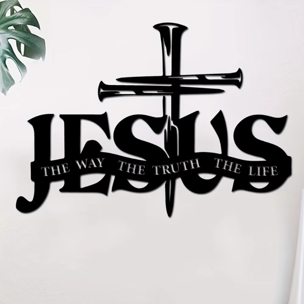 Enhance your spiritual space with our elegant Aluminum Jesus Cross Scripture Wall Art, a perfect blend of faith and modern design.Crafted from lightweight and durable aluminum, this wall art features a timeless Jesus cross design with inspiring scripture, ideal for adding a touch of reverence and style to any room. Its sleek finish and intricate details make it a meaningful gift for holidays, housewarmings, or personal devotion.Jesus cross wall decor, Christian verse iron art, religious metal wall hanging, "The Way The Truth The Life" accent, faith-themed home decorDimensions: 30cm (11.81in) × 21.2cm (8.35in)Material: Sturdy iron (metal)Style: Jesus typography + cross motif, "The Way The Truth The Life" biblical verse wall decor