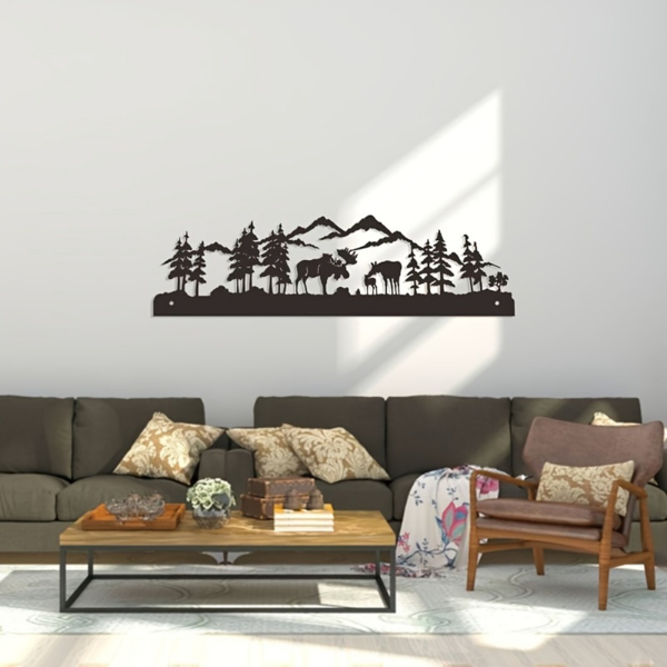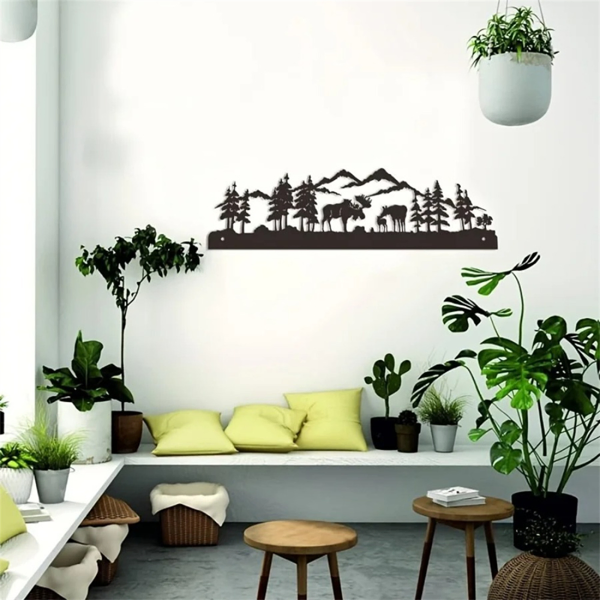 This exquisite aluminum deer wall art brings a touch of nature and modern elegance to your living room, perfect as a festive holiday gift or a stylish home accent.Crafted from lightweight and durable aluminum, this decorative piece features a detailed forest deer silhouette with an antique finish, easy to hang and suitable for enhancing any wall space in your home.Iron nature silhouette decor, forest moose wall art, rustic outdoor wall hanging, wildlife metal decor, nature-themed home accentDimensions: 40cm (15.7in) × 11cm (4.3in)Material: Durable iron (metal)Style: Nature-themed silhouette wall decor