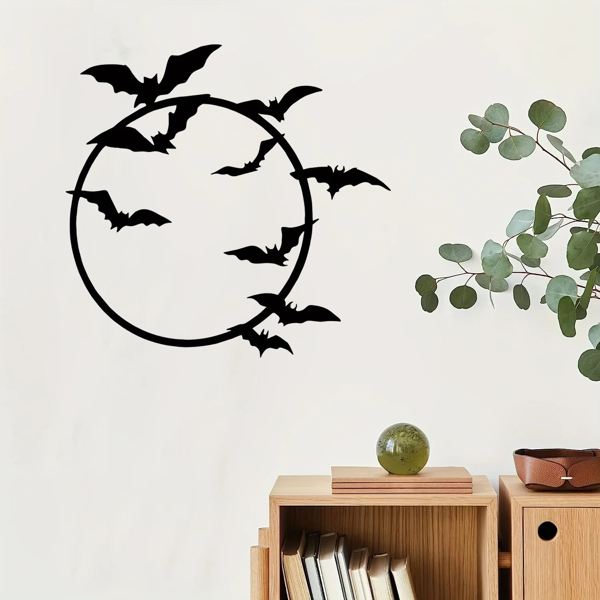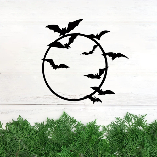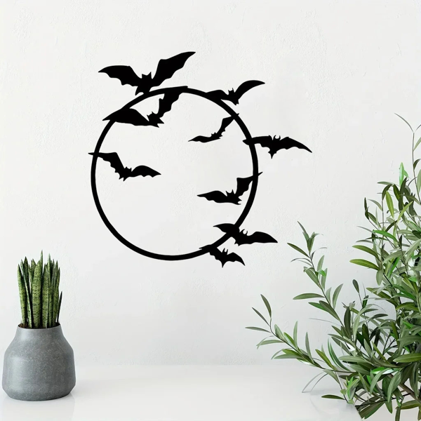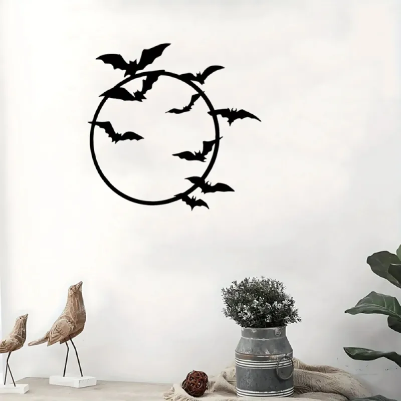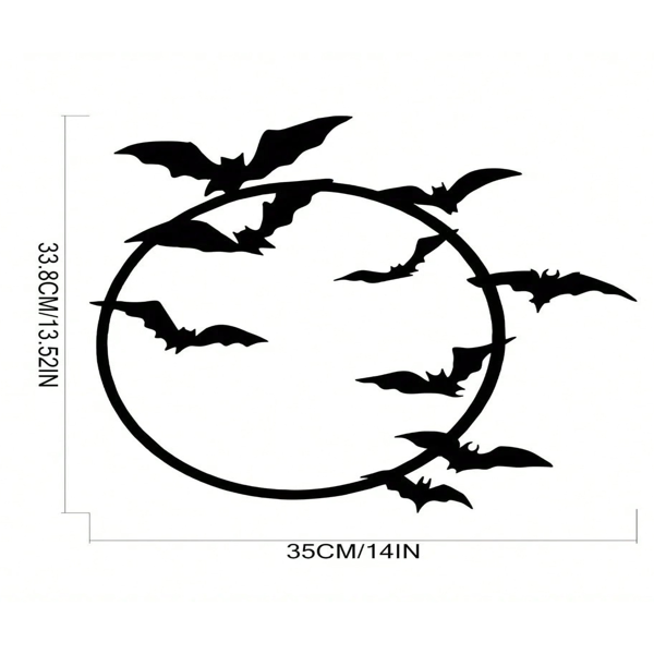 This stunning iron bat wall art is a perfect addition to your Halloween decor, featuring a spooky gothic design suitable for both outdoor and indoor display.Crafted from durable iron, this vintage-style sign showcases intricate bat silhouettes within a gothic frame, adding a hauntingly elegant touch to your home, garden, or Halloween party. Its weather-resistant finish ensures long-lasting use for seasonal or year-round gothic aesthetic.For detailed size specifications, please refer to the size chart.