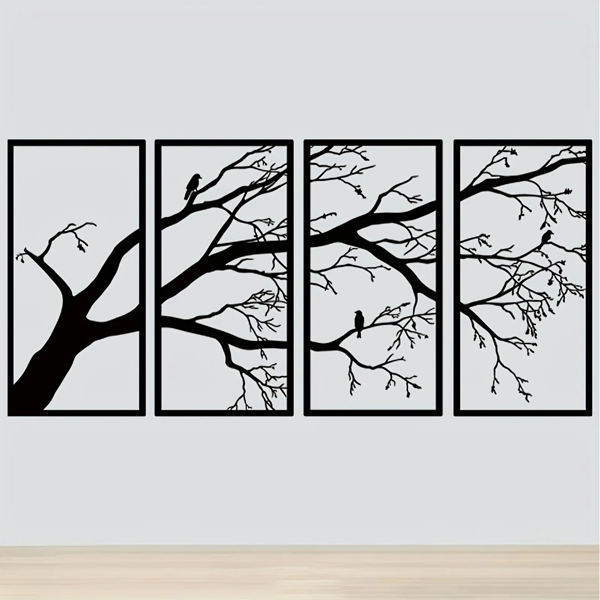 Elevate your home with this stunning set of four aluminum wall art pieces featuring elegant dead branches and flying birds, perfect for adding a touch of nature and modern minimalist style to any room.Crafted from lightweight and durable aluminum, this four-piece wall decor set showcases a delicate dead branch and bird design with a sleek finish, offering a contemporary yet natural aesthetic that complements various interior styles; its easy-to-hang design makes it ideal for living rooms, bedrooms, or offices as a thoughtful holiday or housewarming gift.Quantity: 4-panel setIndividual panel dimensions: 20.9cm (8.3in) × 51.4cm (20.2in)Total set width: 100cm (39.4in)Material: Sturdy iron (metal)Style: Minimalist bare branch & bird silhouette, 4-panel cohesive wall decor