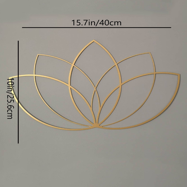 Discover our exquisite Zen Lotus Wall Art, a perfect fusion of modern aesthetics and traditional Asian inspiration, designed to bring peace and elegance to your living space.Crafted from lightweight and durable aluminum with a delicate lotus motif, this wall decor features a minimalist lines design and a timeless matte finish, ideal for creating a serene atmosphere in any room.Dimensions: 40cm (15.7in) × 25.6cm (10in)Material: Sturdy iron (metal, gold finish)Style: Minimalist lotus line art, zen/new Chinese theme wall decor